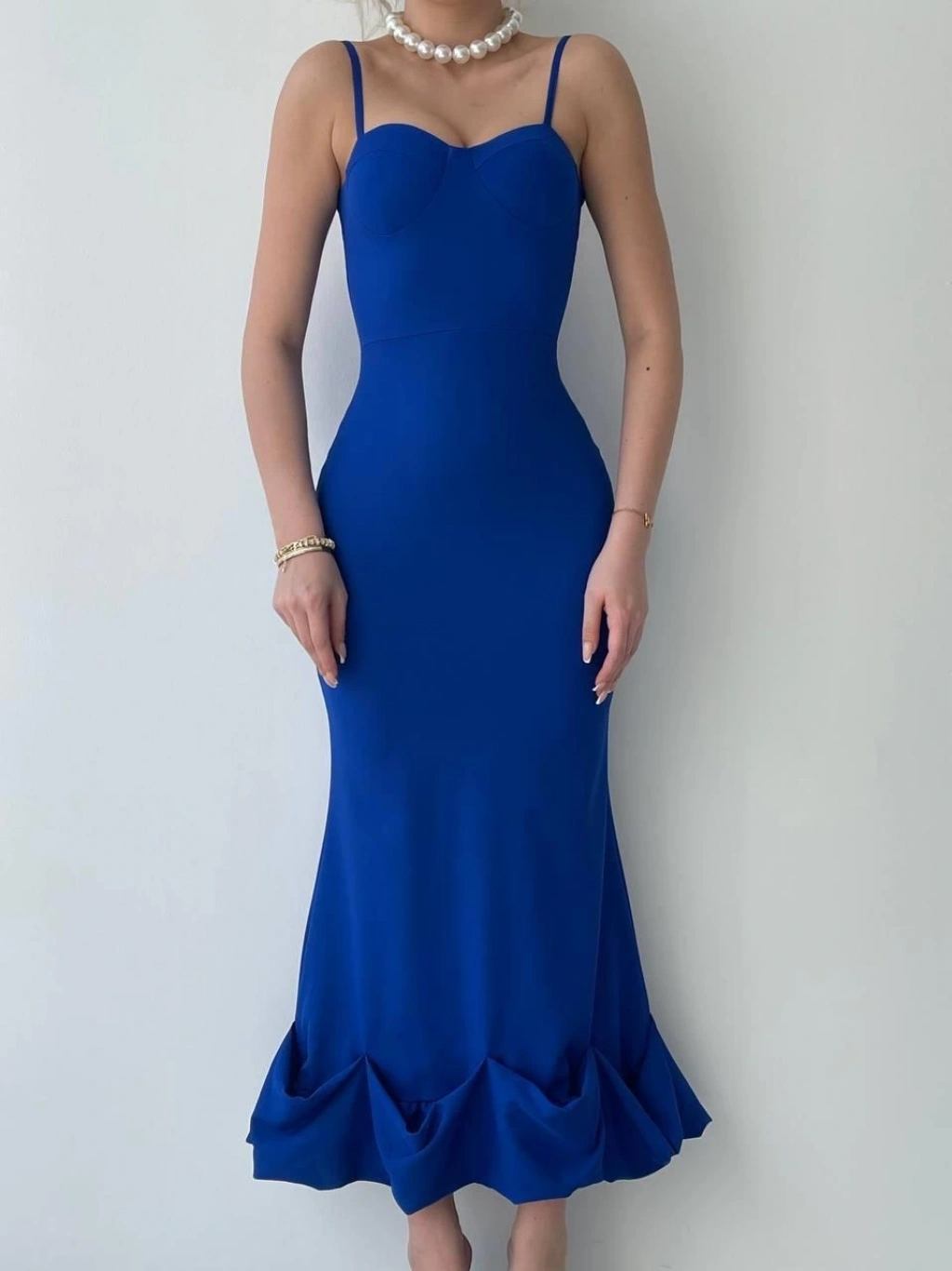 Dominic Eteği Büzgülü Midi Boy Elbise