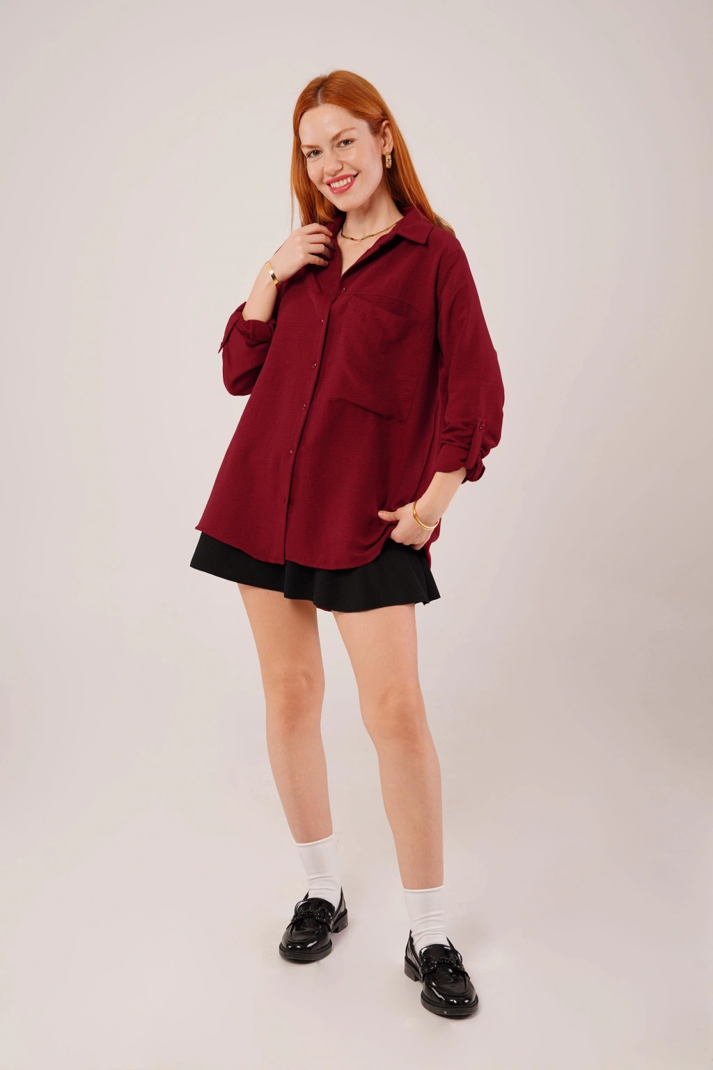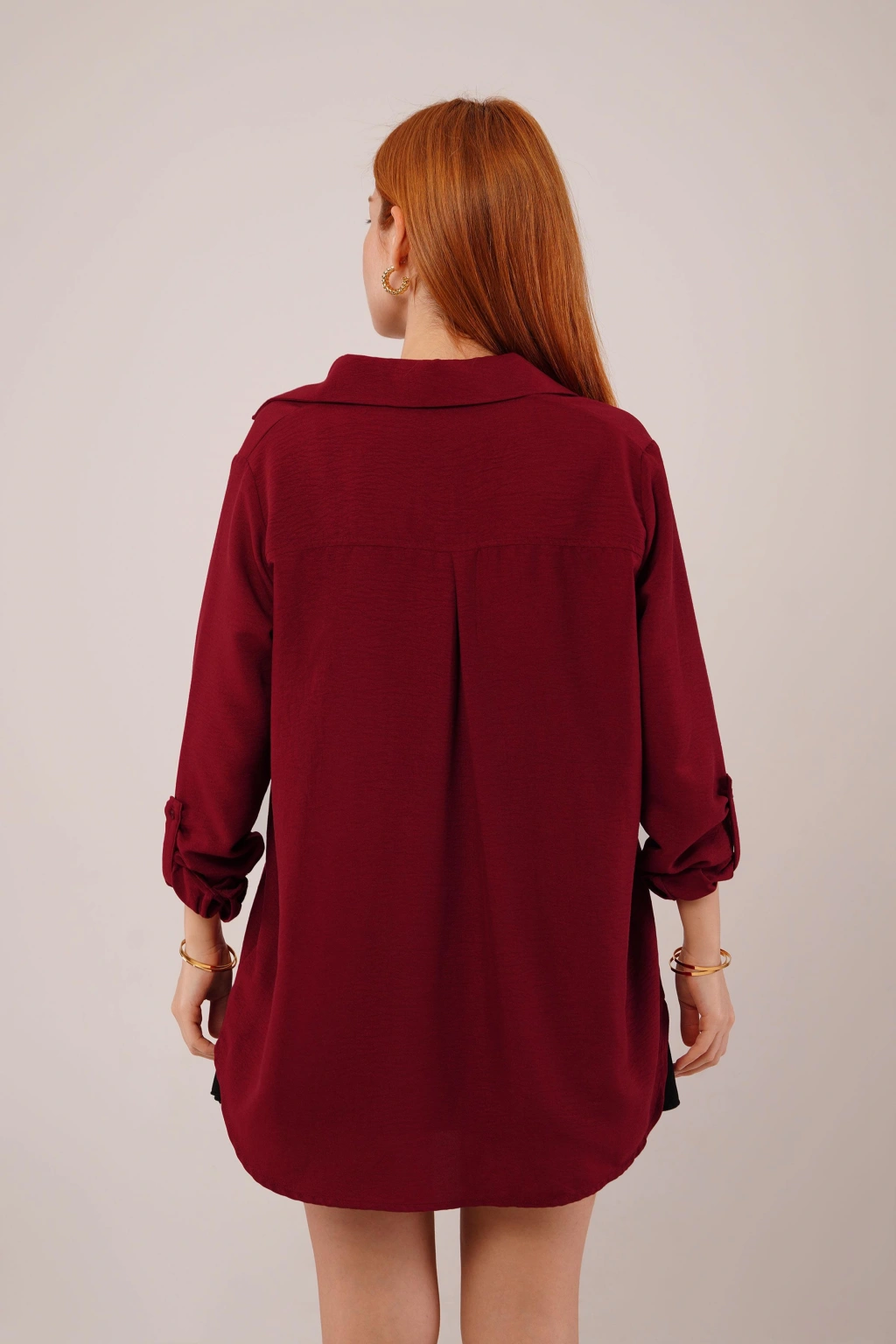 Salaş Kesim Cepli Bordo Gömlek