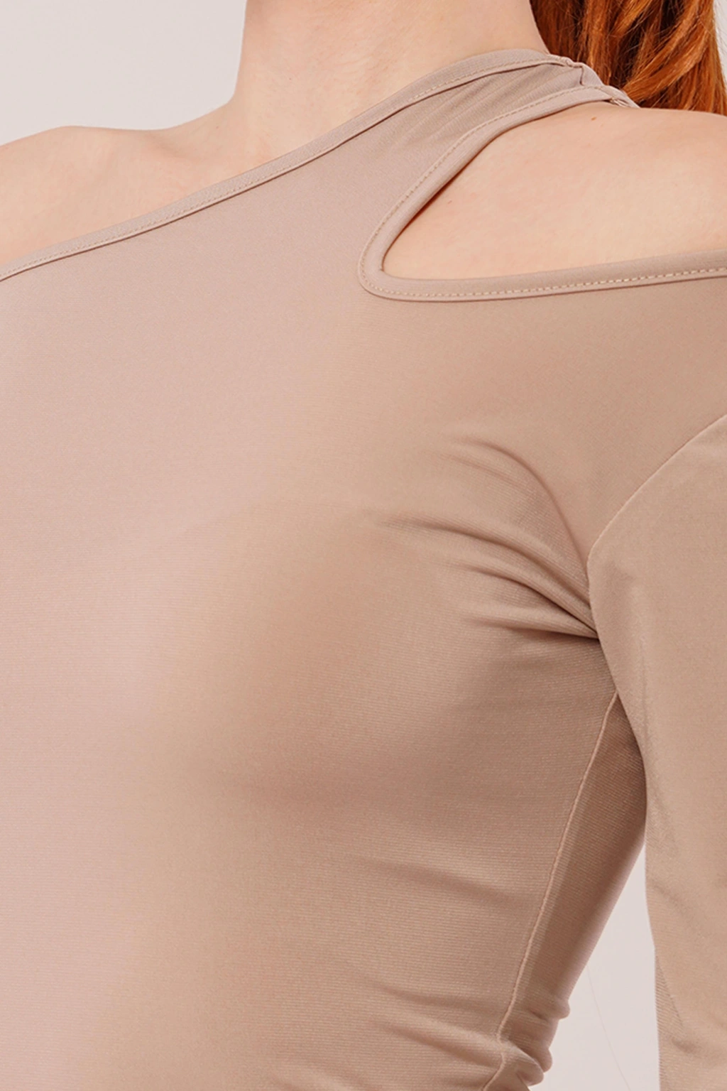 Omuz Dekolte Detaylı Krem Bluz