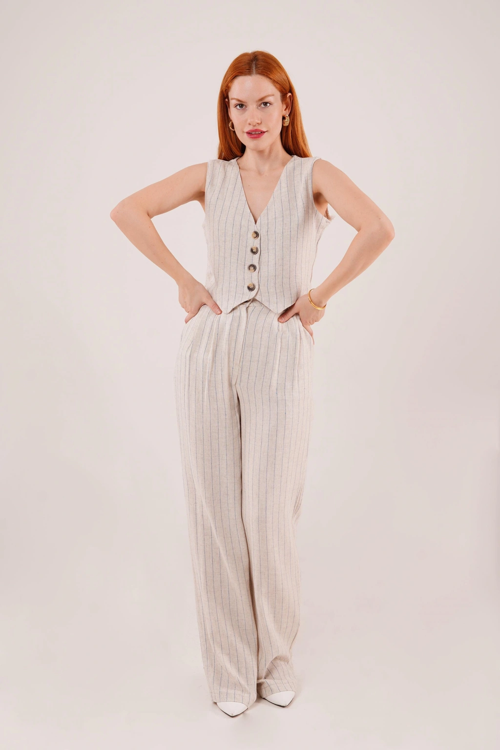 Yelek Ve Pantolon Mavi Şeritli İkili Takım