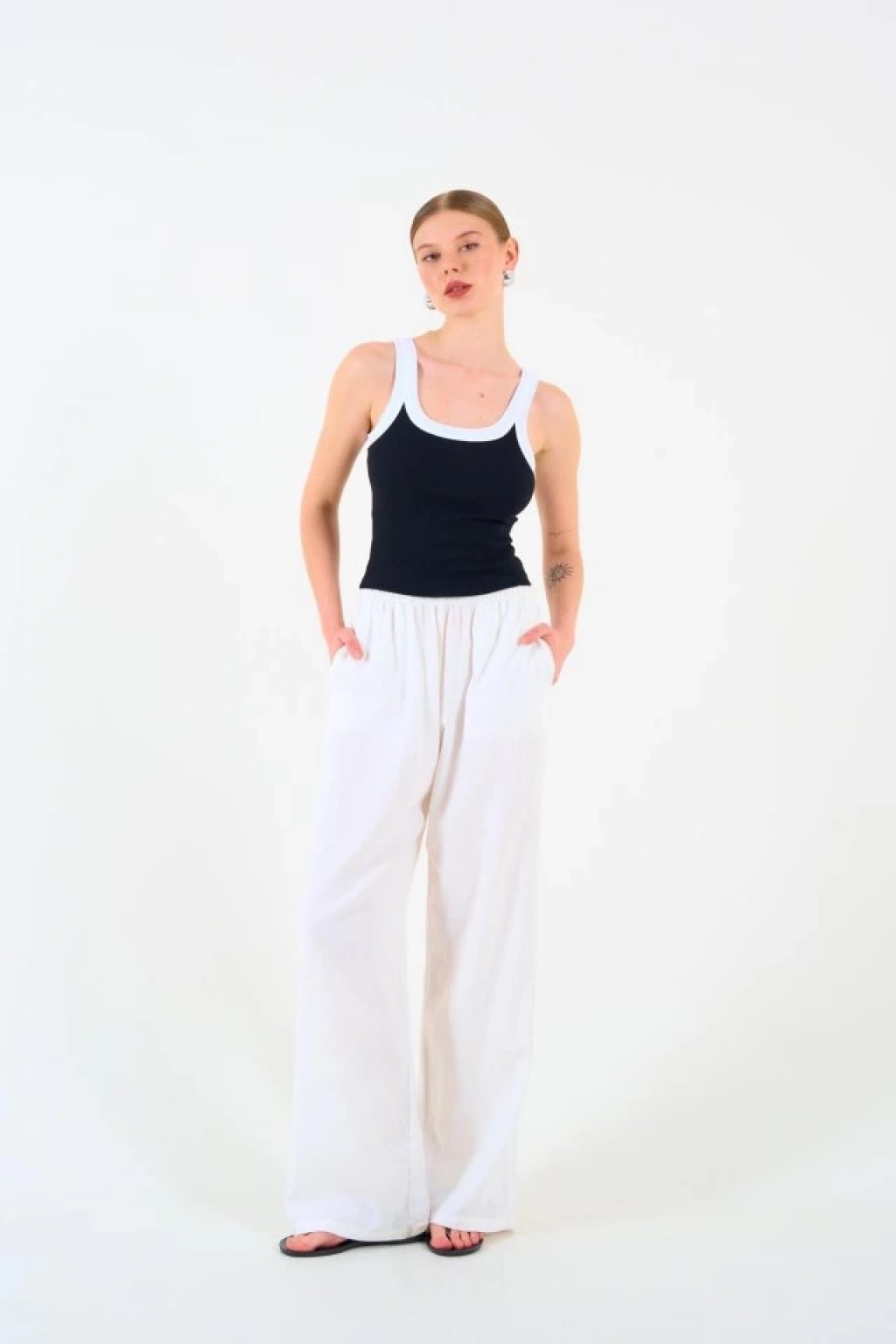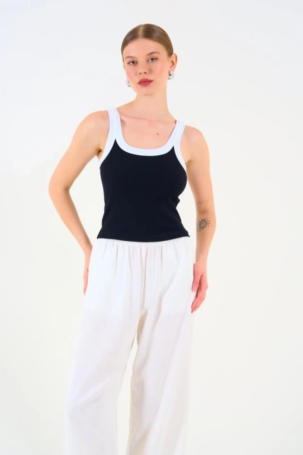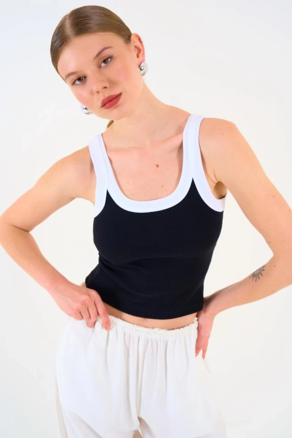 İki Renkli Atlet - Siyah-Beyaz