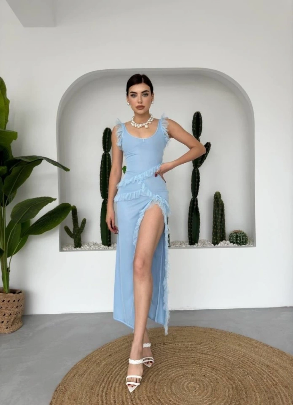 Modelin Ölçüleri: Boy:165, Kg:55, Göğüs:90, Bel:72, Kalça: 100