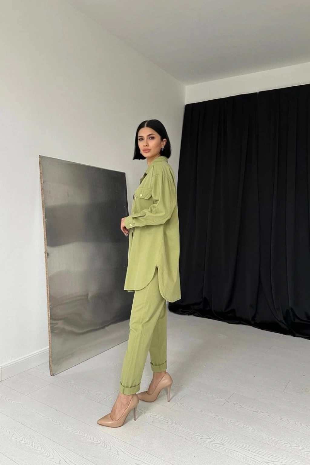 Yeşil Gömlek Ve Çıtçıtlı Pantolon Takım
