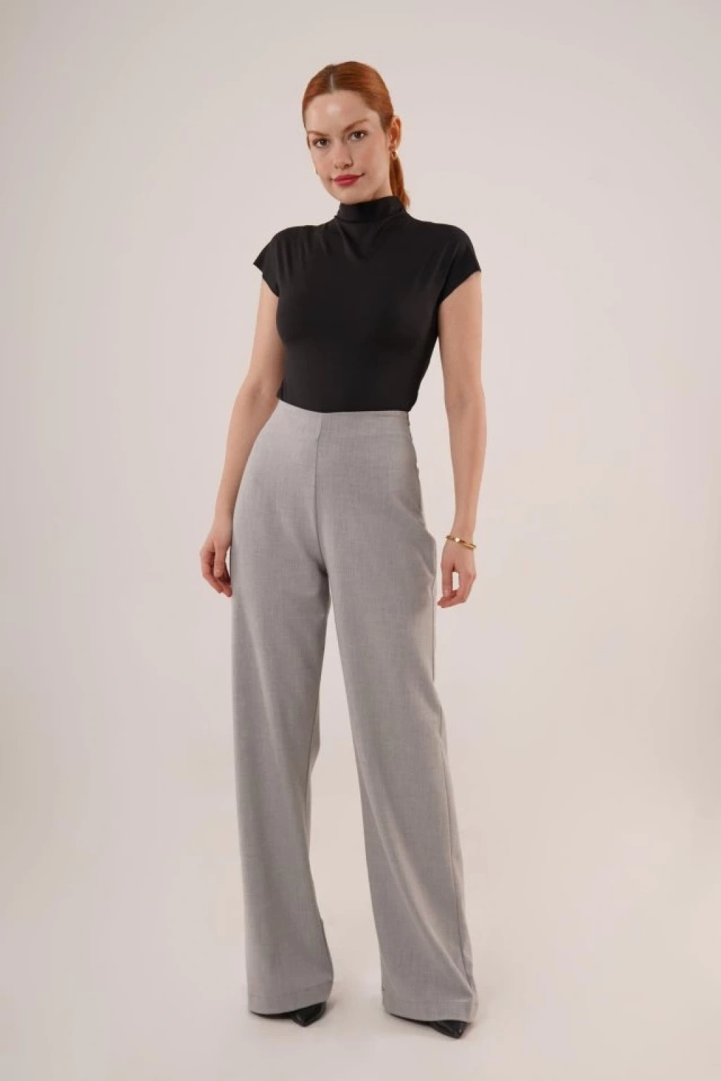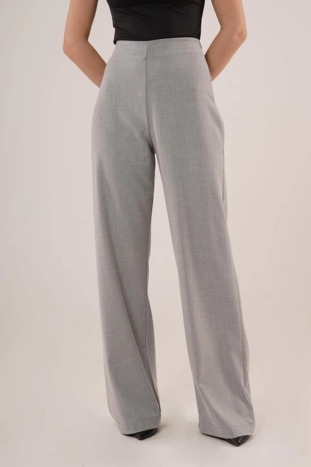 Bol Paça Yandan Fermuarlı Gri Kumaş Pantolon