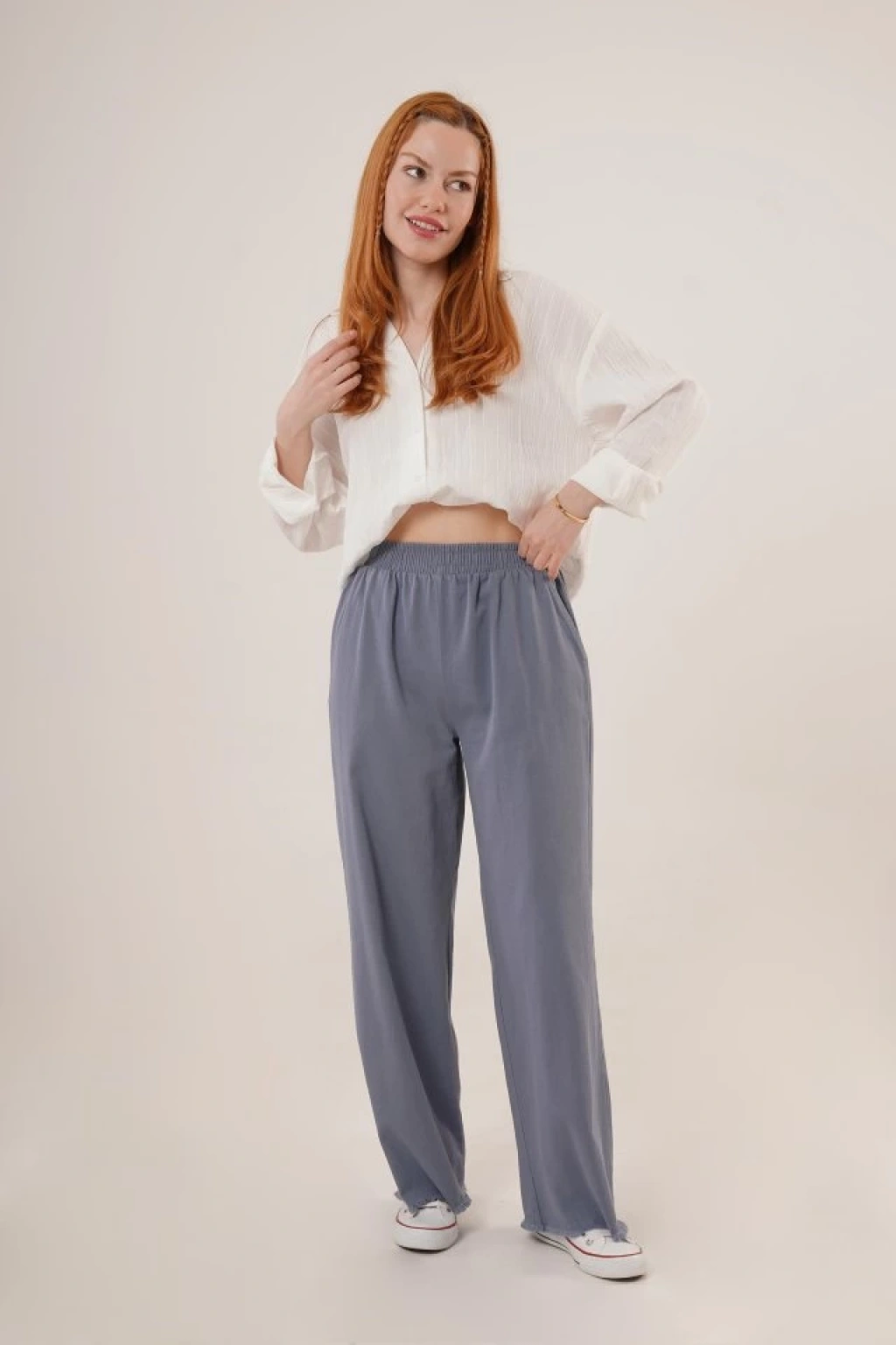 Bel Lastikli Paça Detaylı Cepli İndigo Pantolon