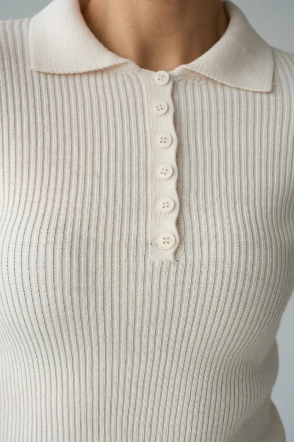 Polo Yaka 6 Düğmeli Kazak - Krem