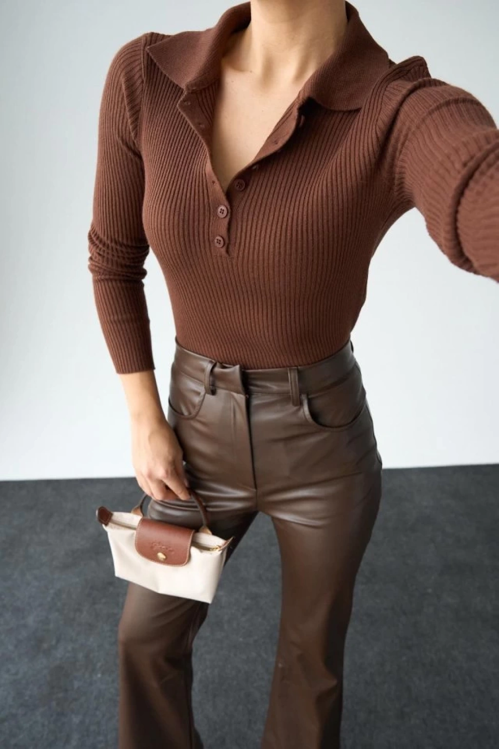 Polo Yaka 6 Düğmeli Kazak - KAHVE