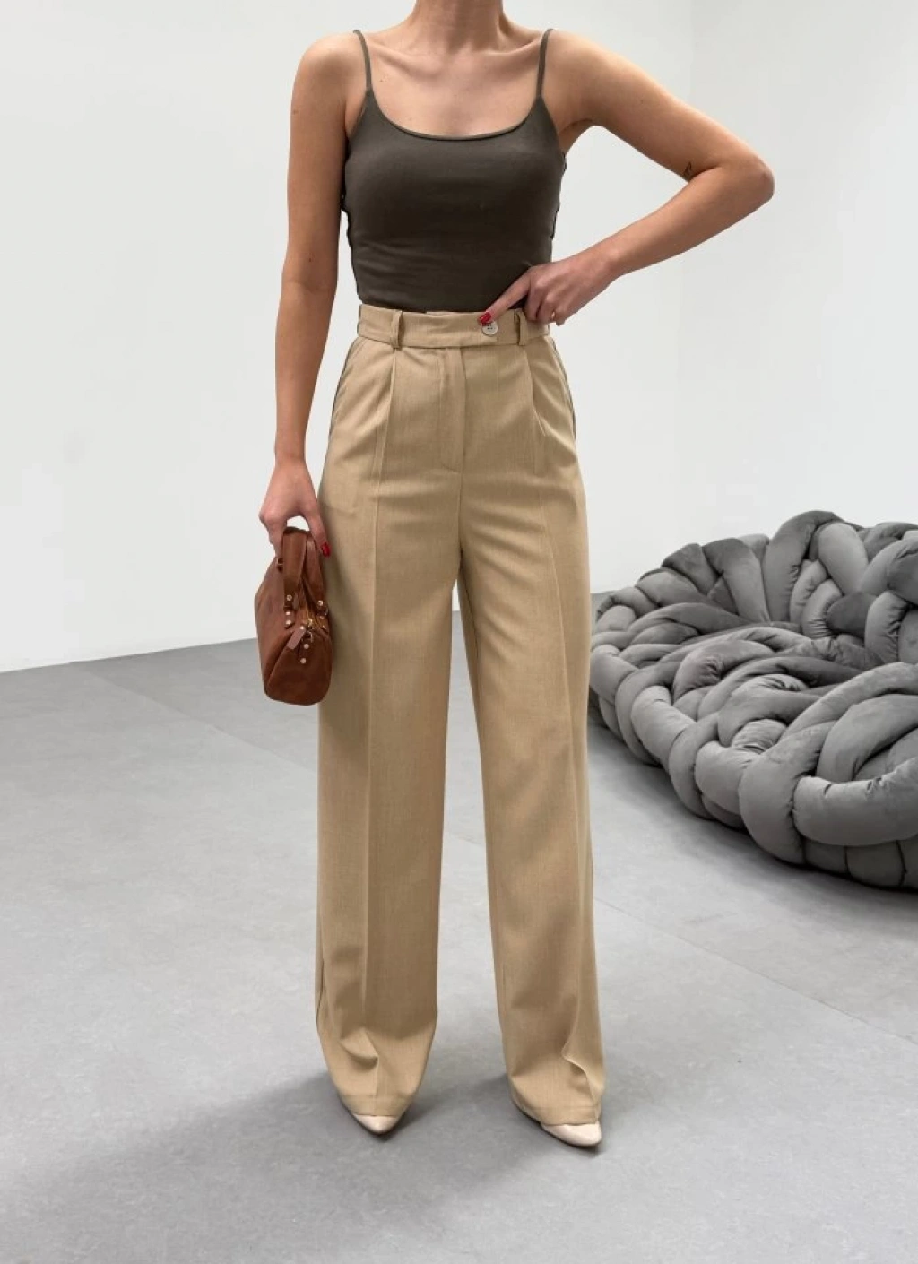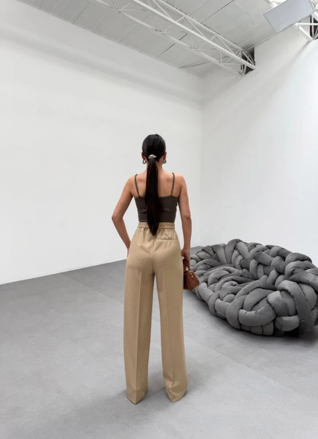Trio Arka Bel Lasti̇k Detayli Palazzo Pantolon