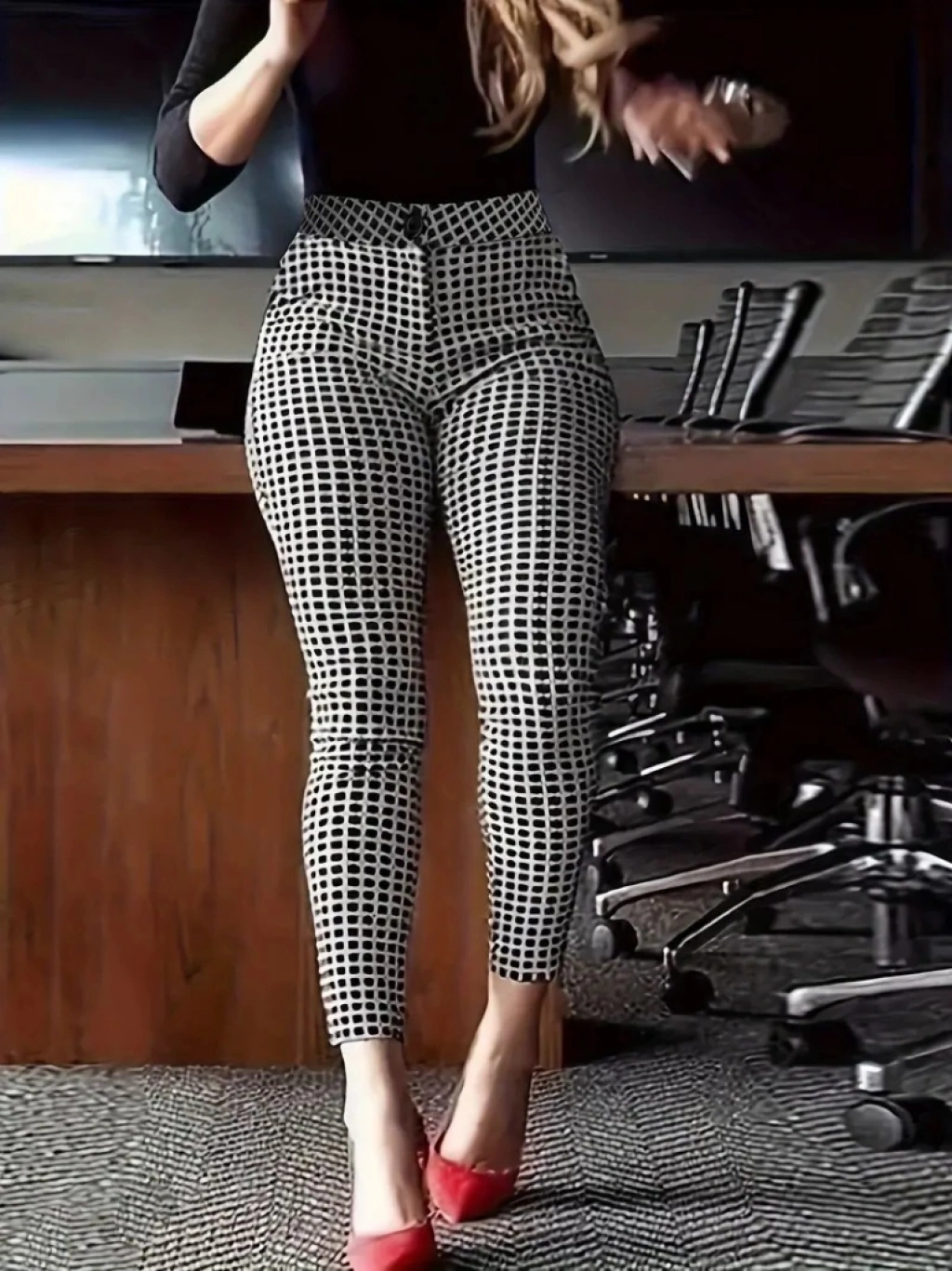 Kadın Yüksek Bel Desenli Dalgıç Pantolon