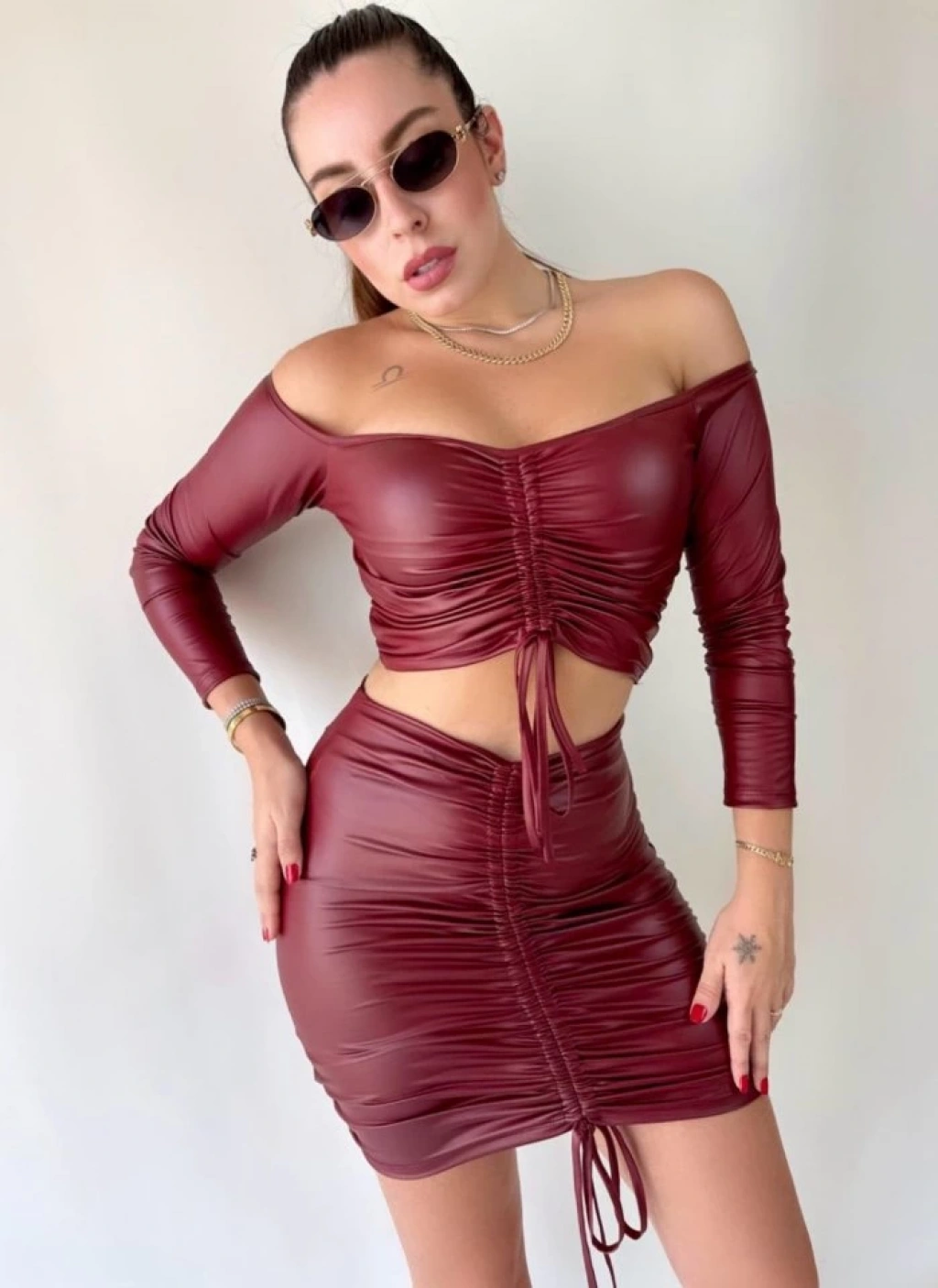 Kadın Büzgülü Deri Etek Takım Fırsat Ürün