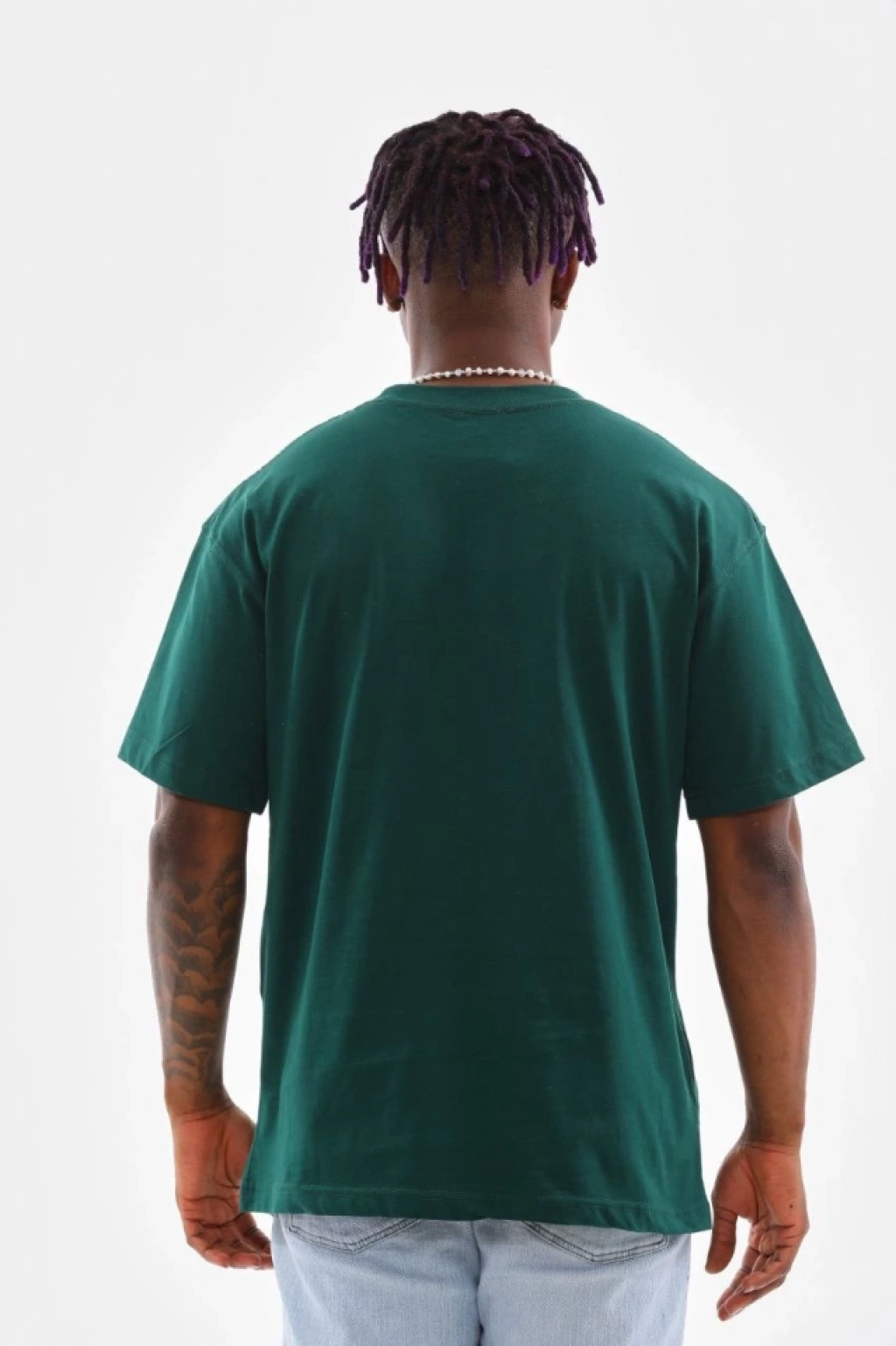 Unisex Oversize Düz Bisiklet Yaka T-Shirt - Koyu Yeşili