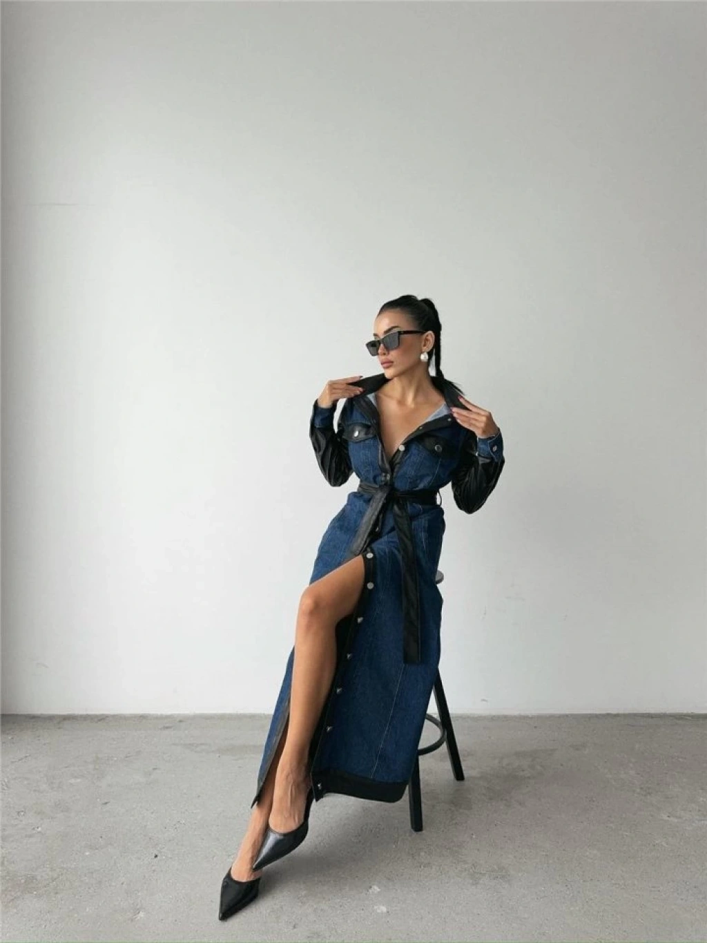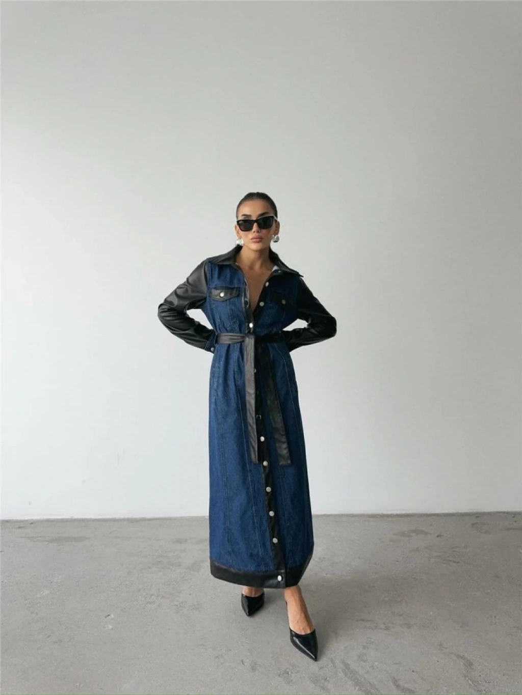 KOT ELBİSE UZUN ÖNDEN DÜĞMELİ - Mavi