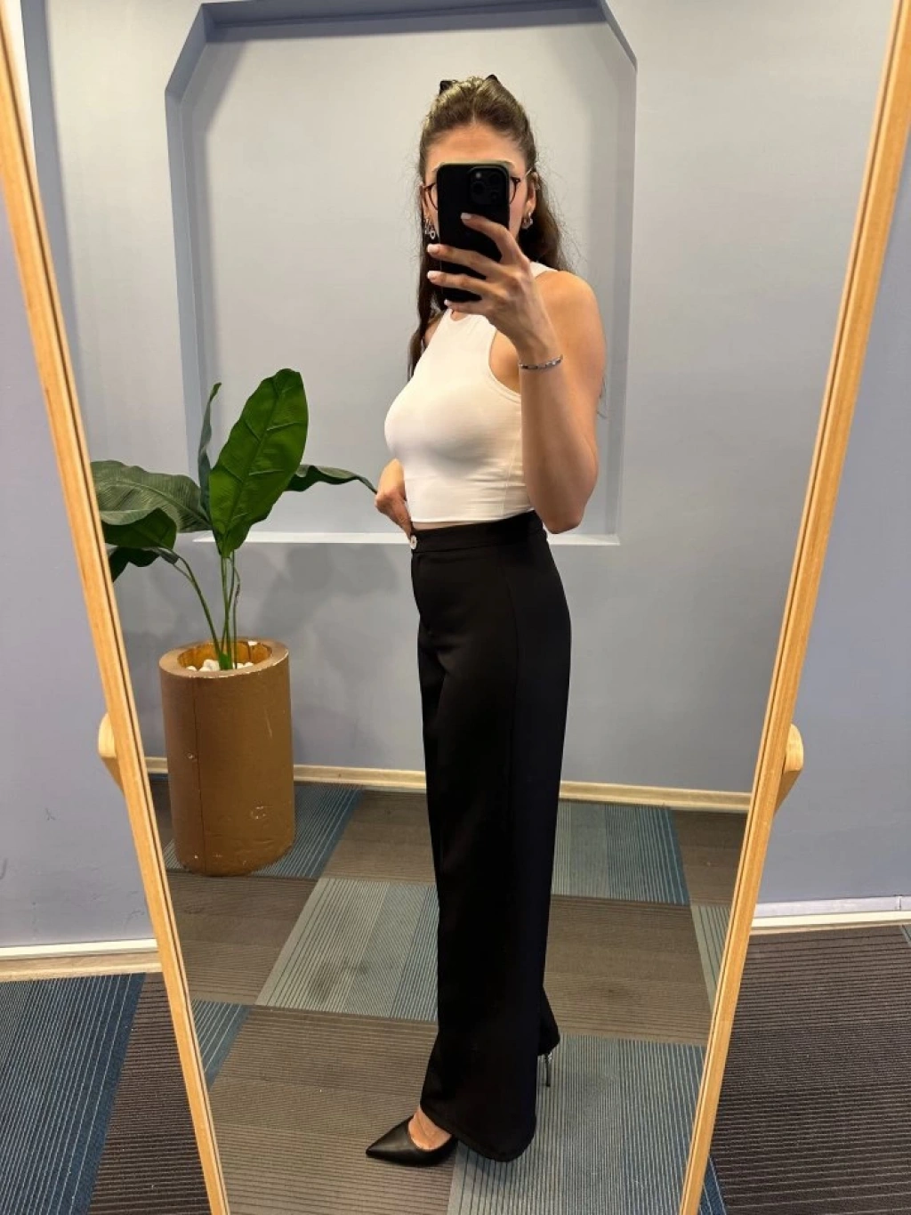 Yüksek Bel Palazzo Metal DüğmePantolon