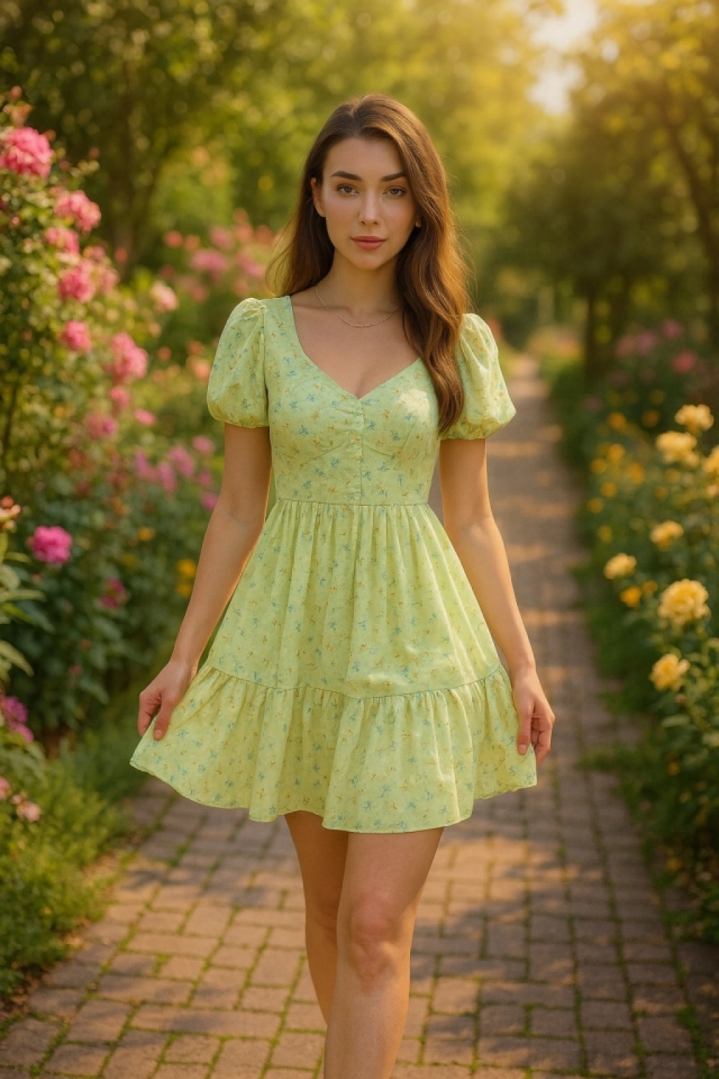 Yeşil Sırt Dekolteli Elbise