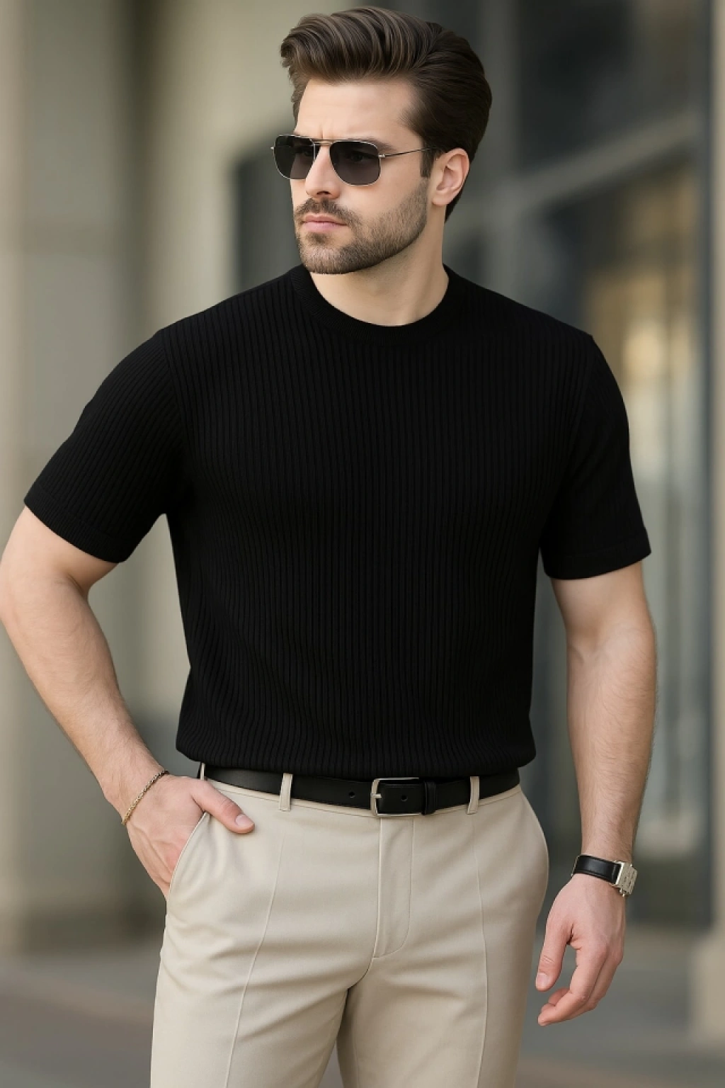 Erkek Kısa Kollu Bisiklet Yaka Triko Bluz