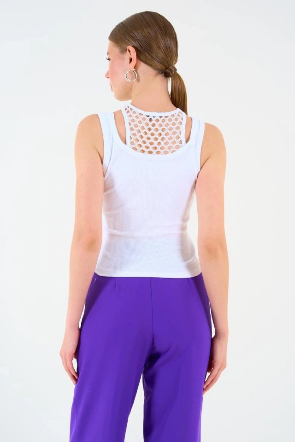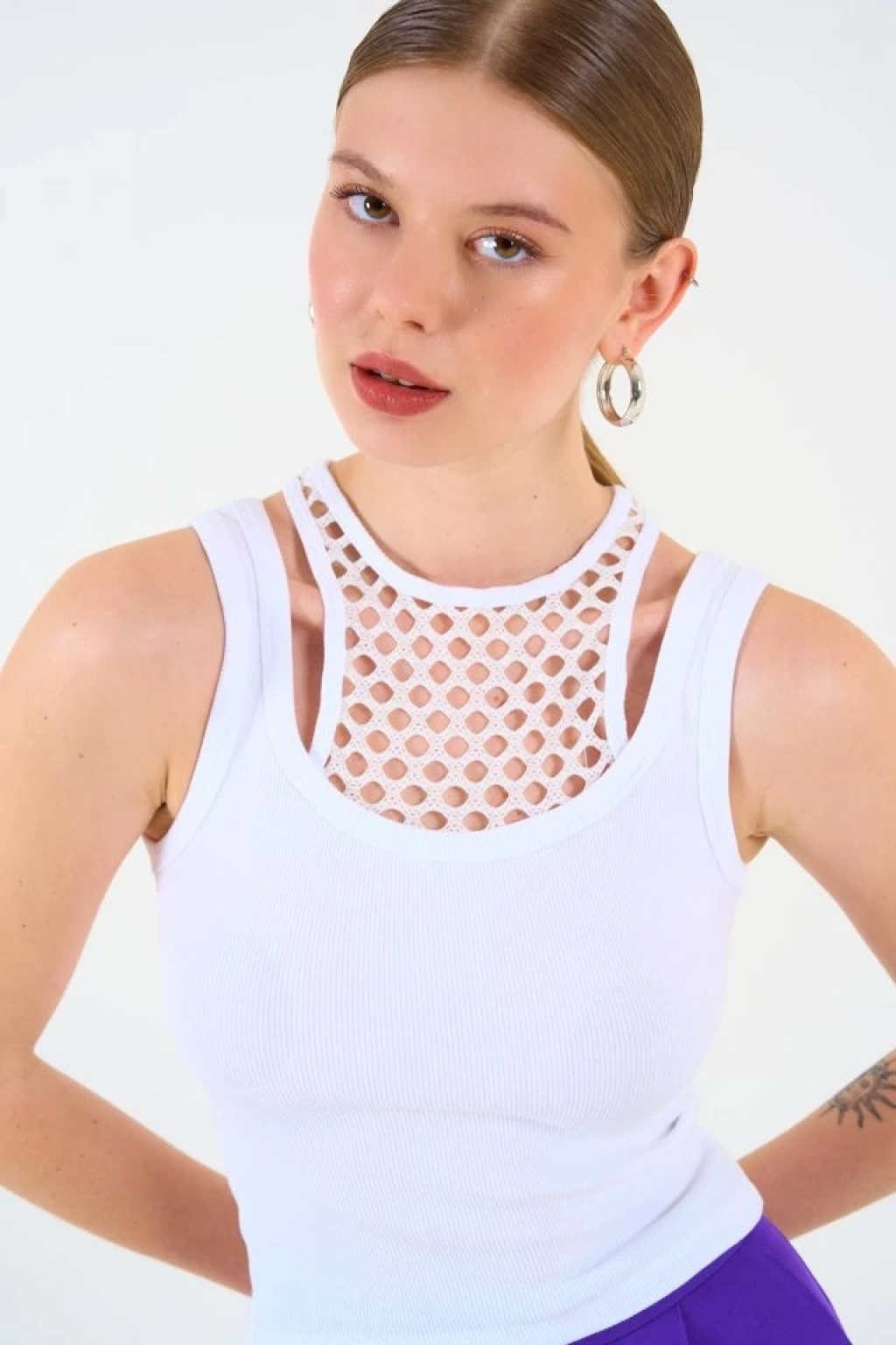 İçi Dantelli Kaşkorse Atlet - Beyaz