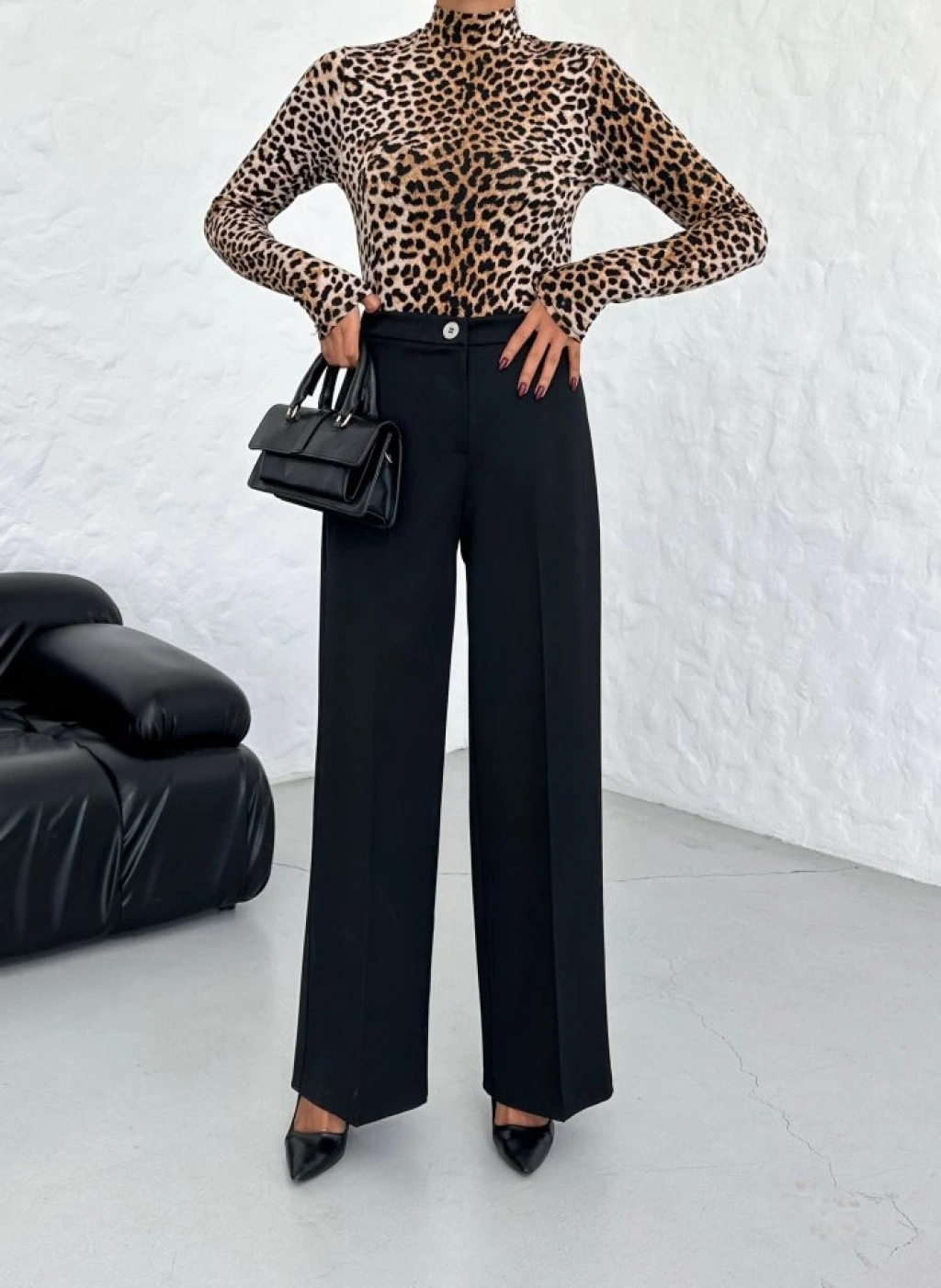 230 Gr Poly Viscose Lycra Metal Düğme Palazzo Pantolon