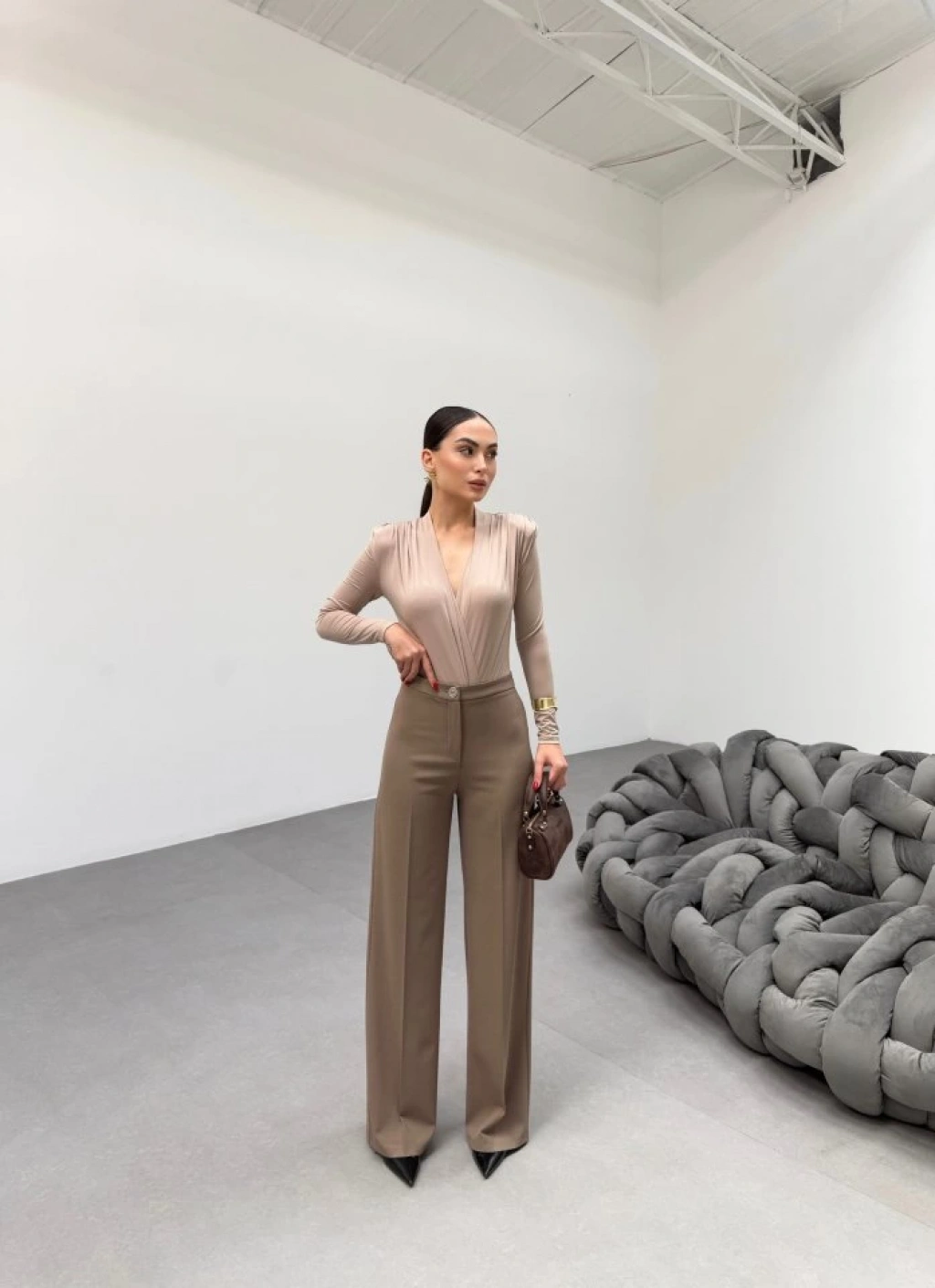 230 Gr Poly Viscose Lycra Metal Düğme Palazzo Pantolon