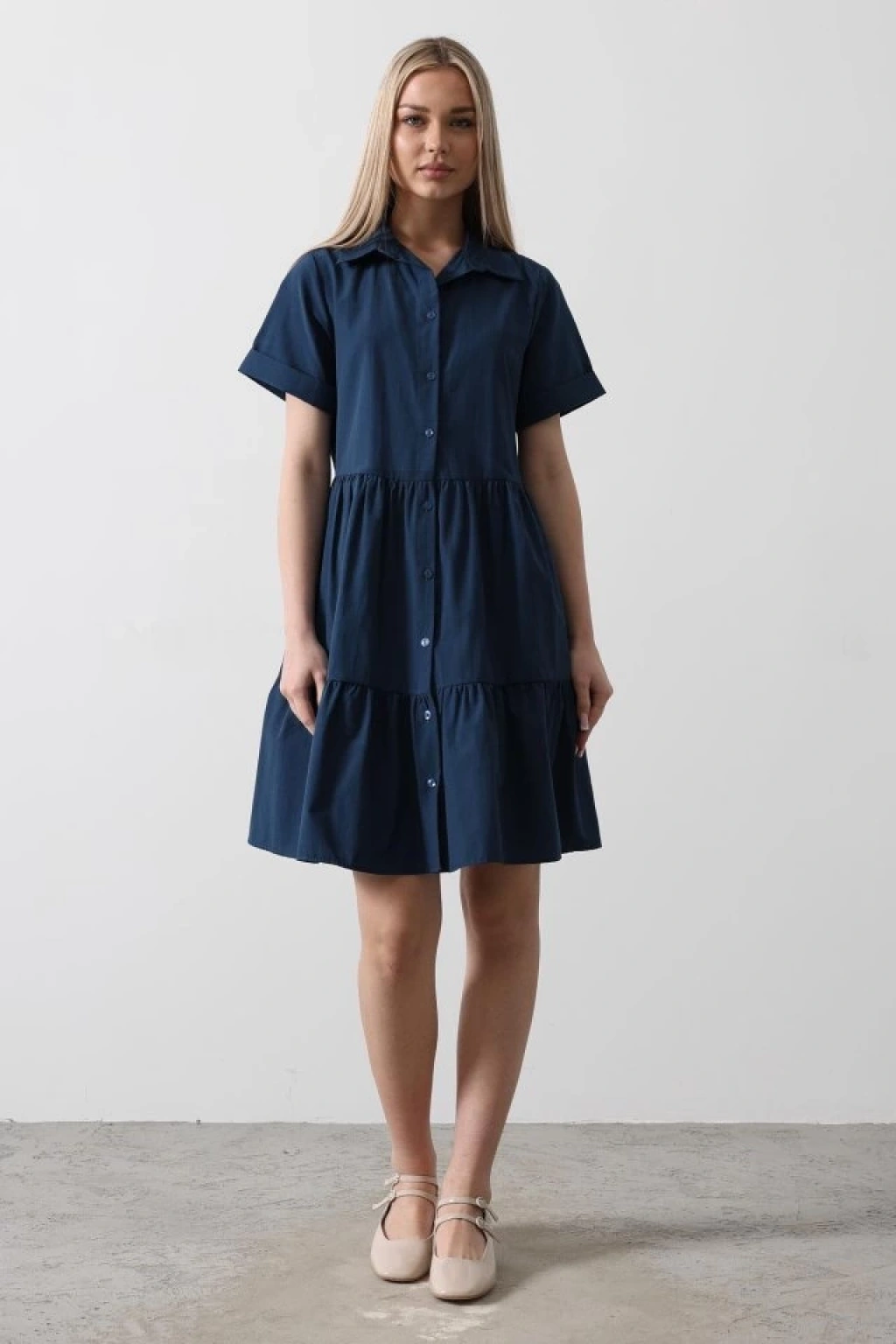 Kısa Kol Düğmeli Elbise - İndigo