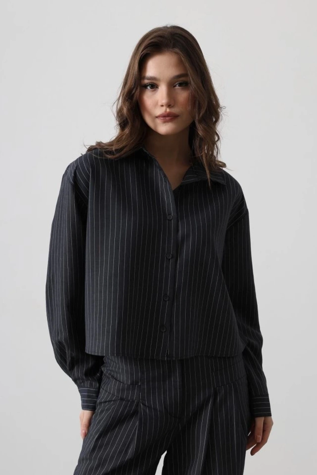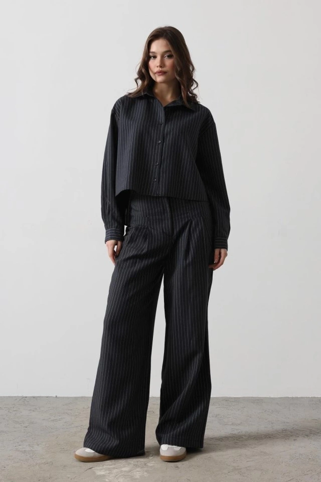 Çizgili Gömlek Pantolon Takım - Lacivert