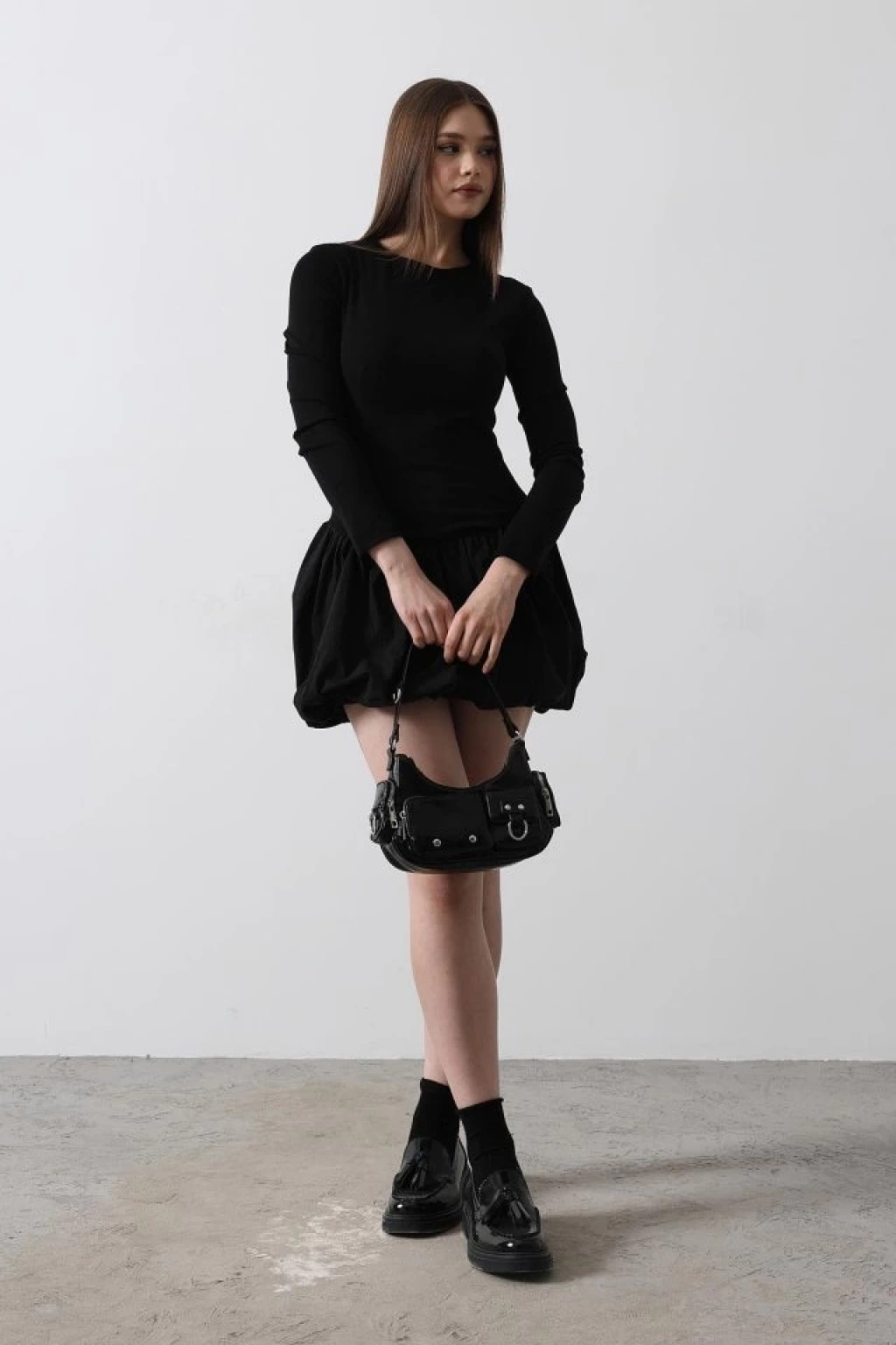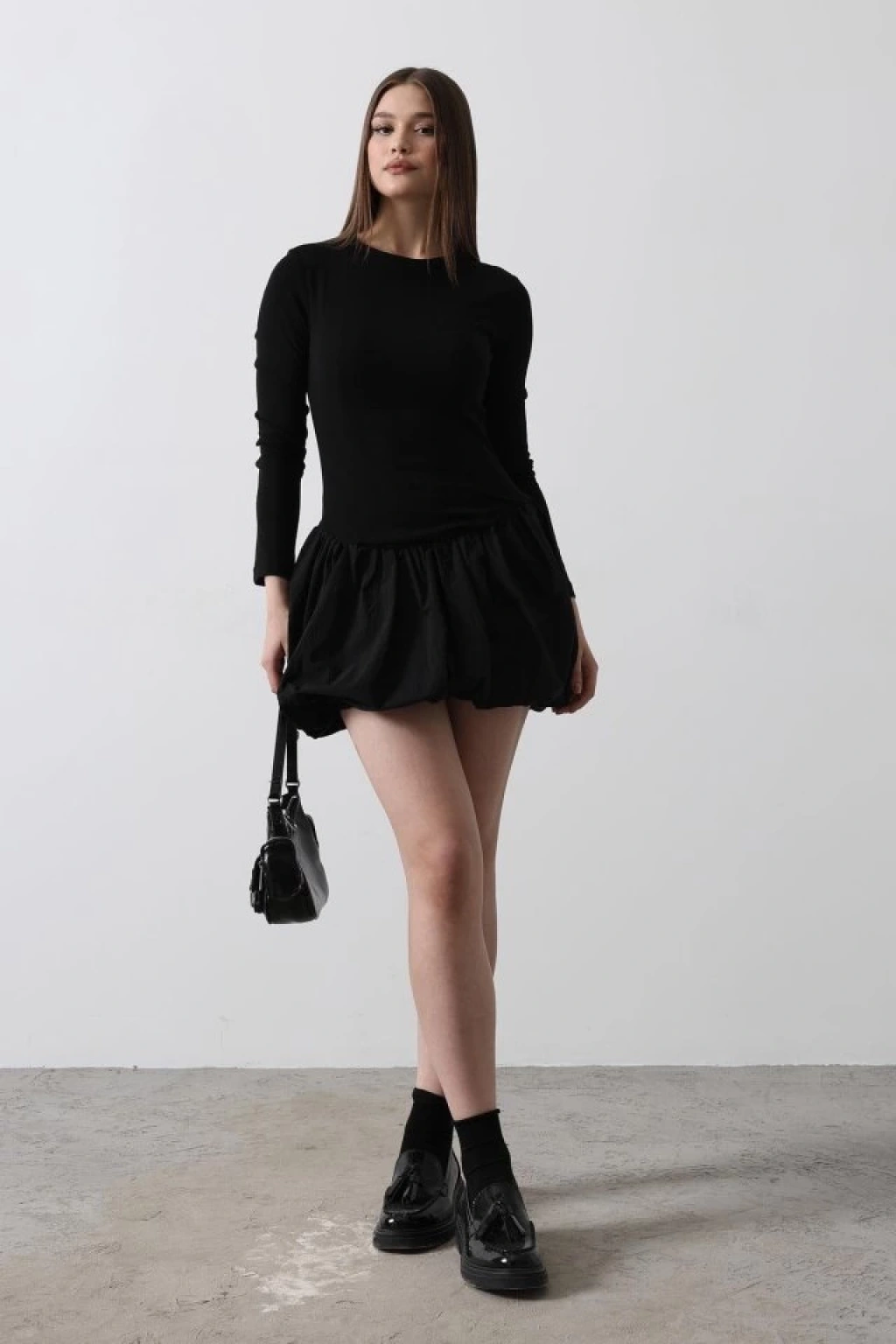 Balon Etekli Elbise - Siyah