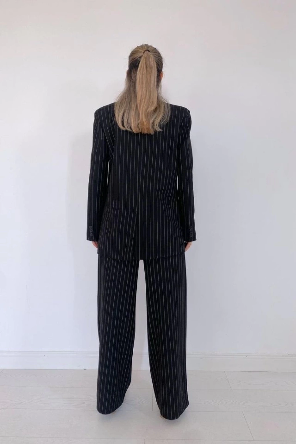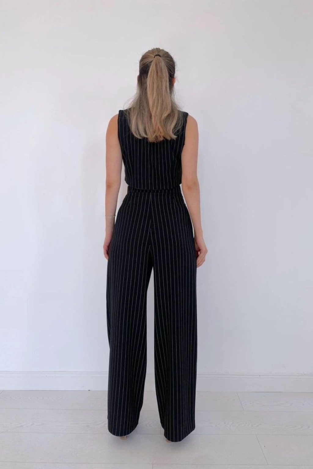 Siyah Çizgili Ceket & Yelek Ve Pantolon Takım