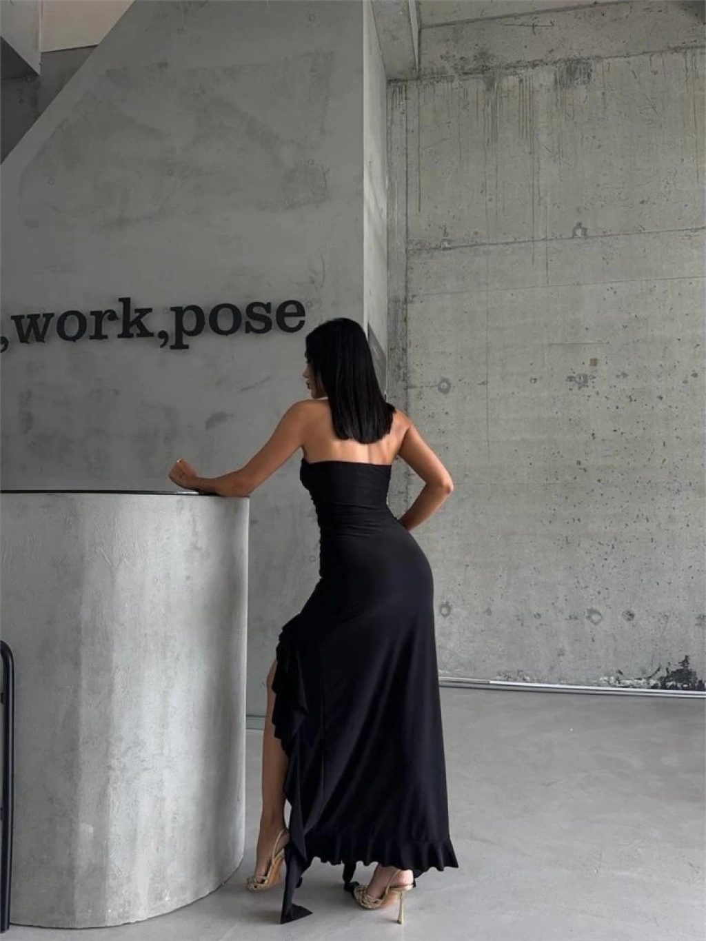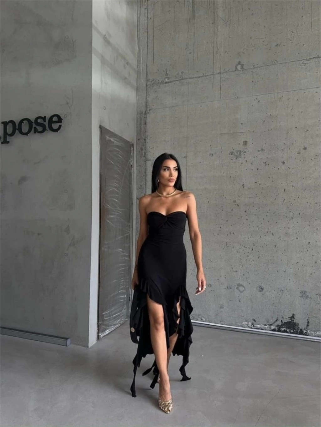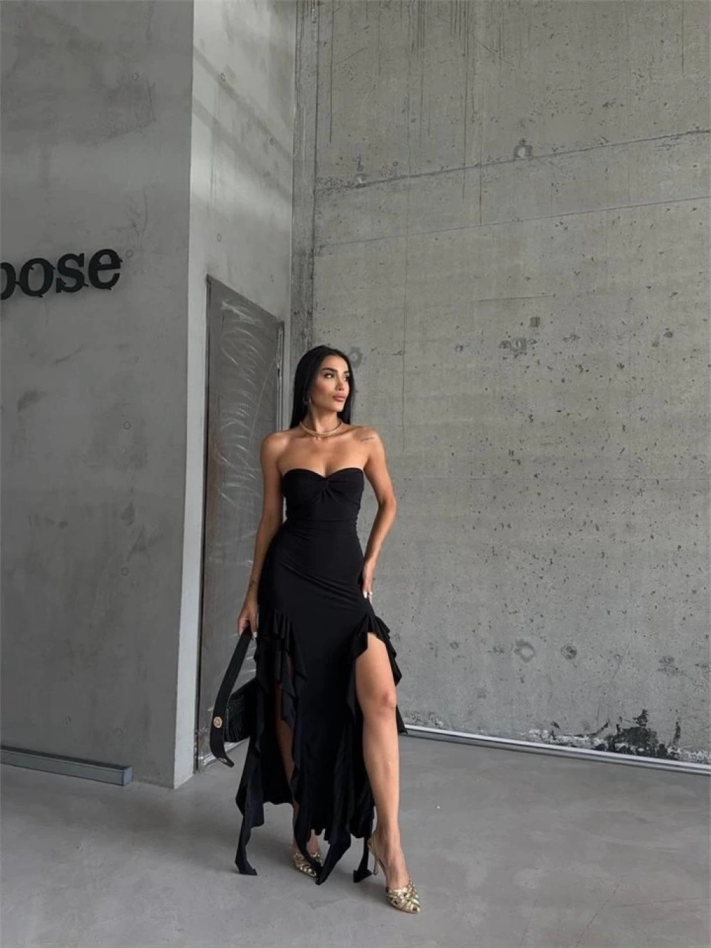 STRABLEZ SANDY ELBİSE YANLARI KATLI - Siyah