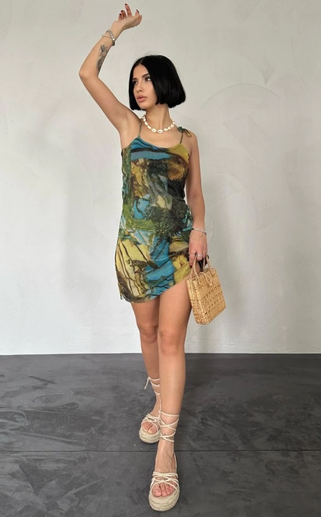 Modelin Ölçüleri: Boy:165, Kg:55, Göğüs:90, Bel:72, Kalça: 100