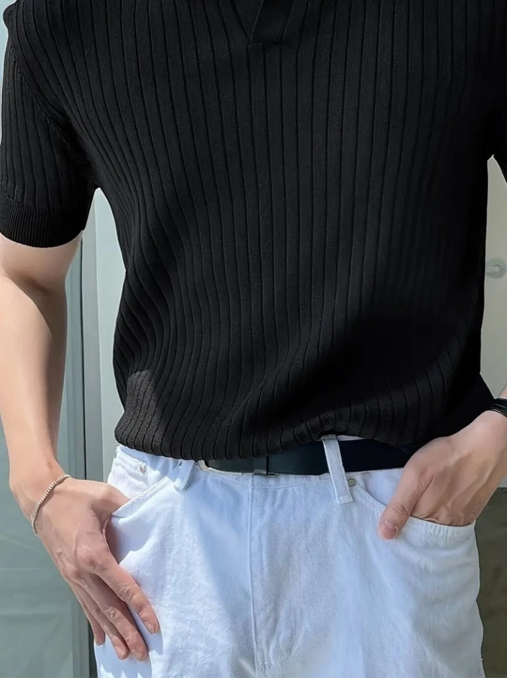 Erkek Kısa Kollu Yakalı Yakadan Düğmeli Triko Bluz