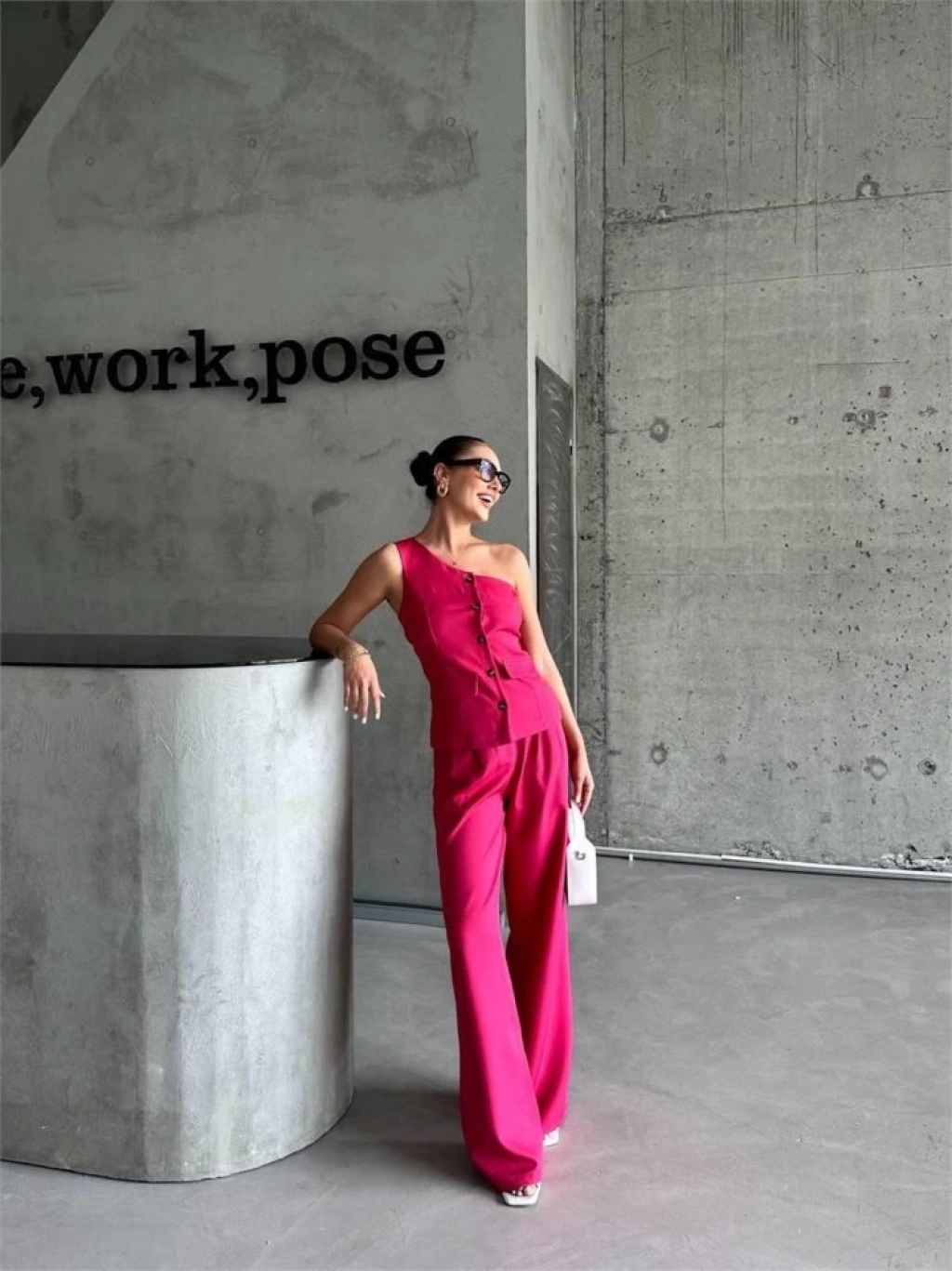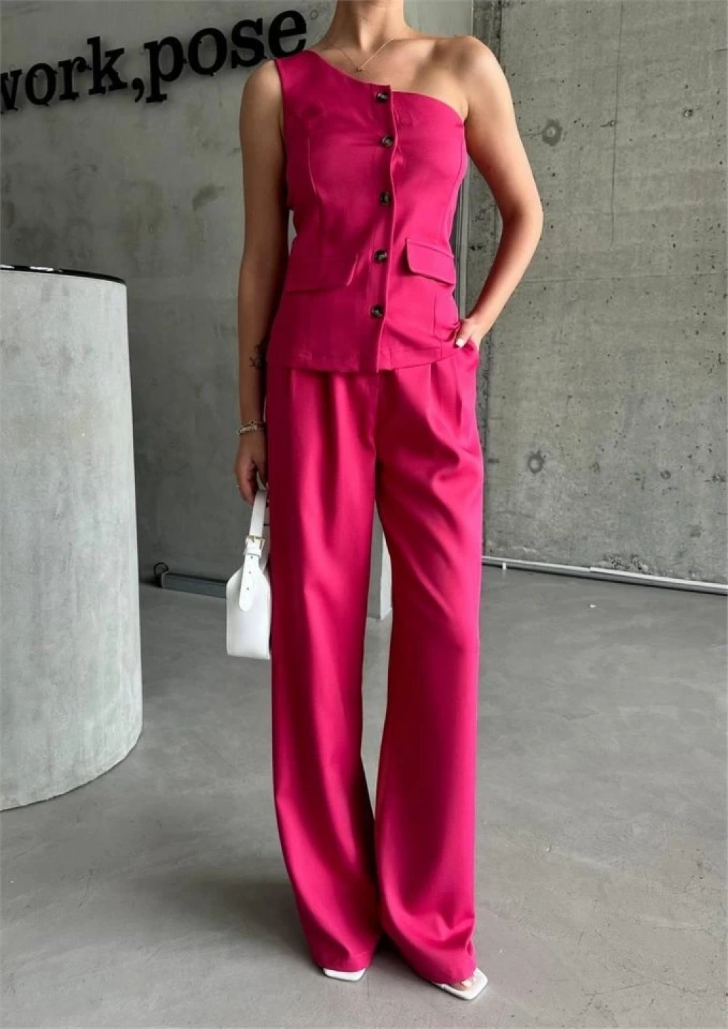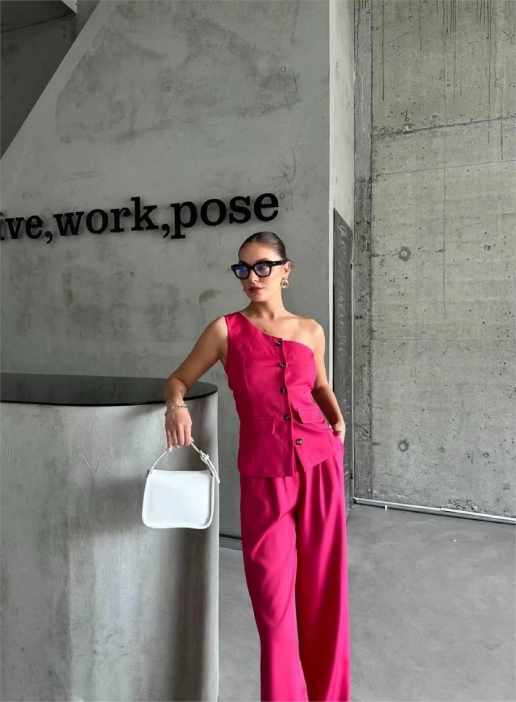 TEK KOL YELEK - PANTOLON TAKIM ATLAS - Fuşya