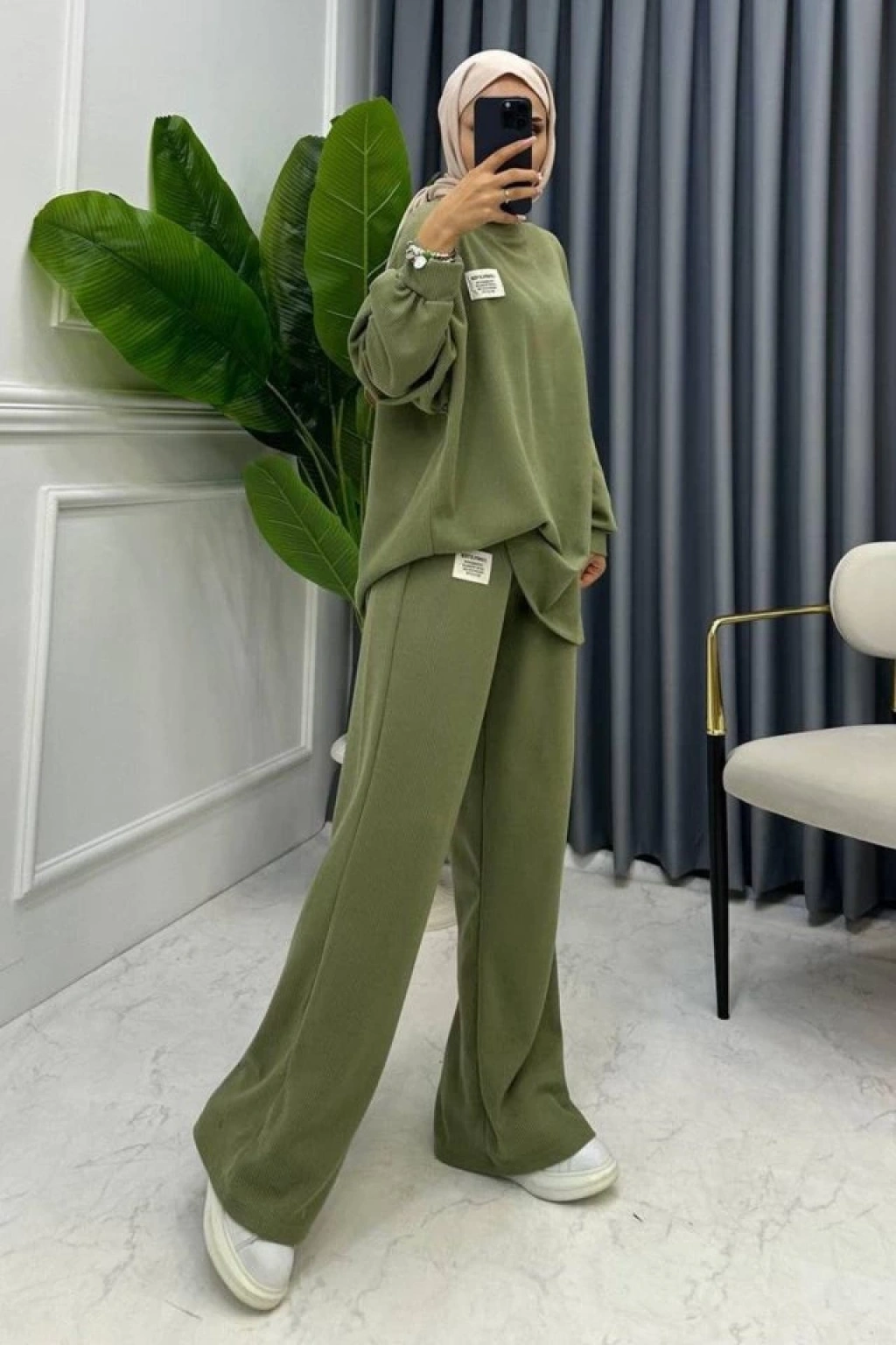 Mint Klasik Fitilli Kazak Ve Pantolon Takım