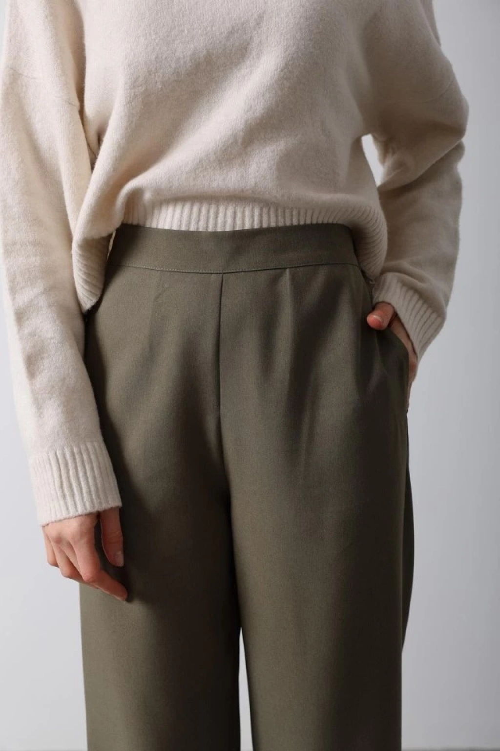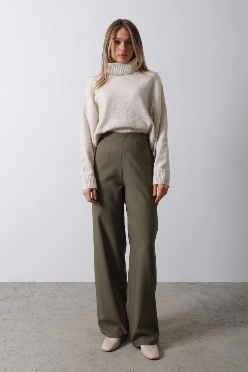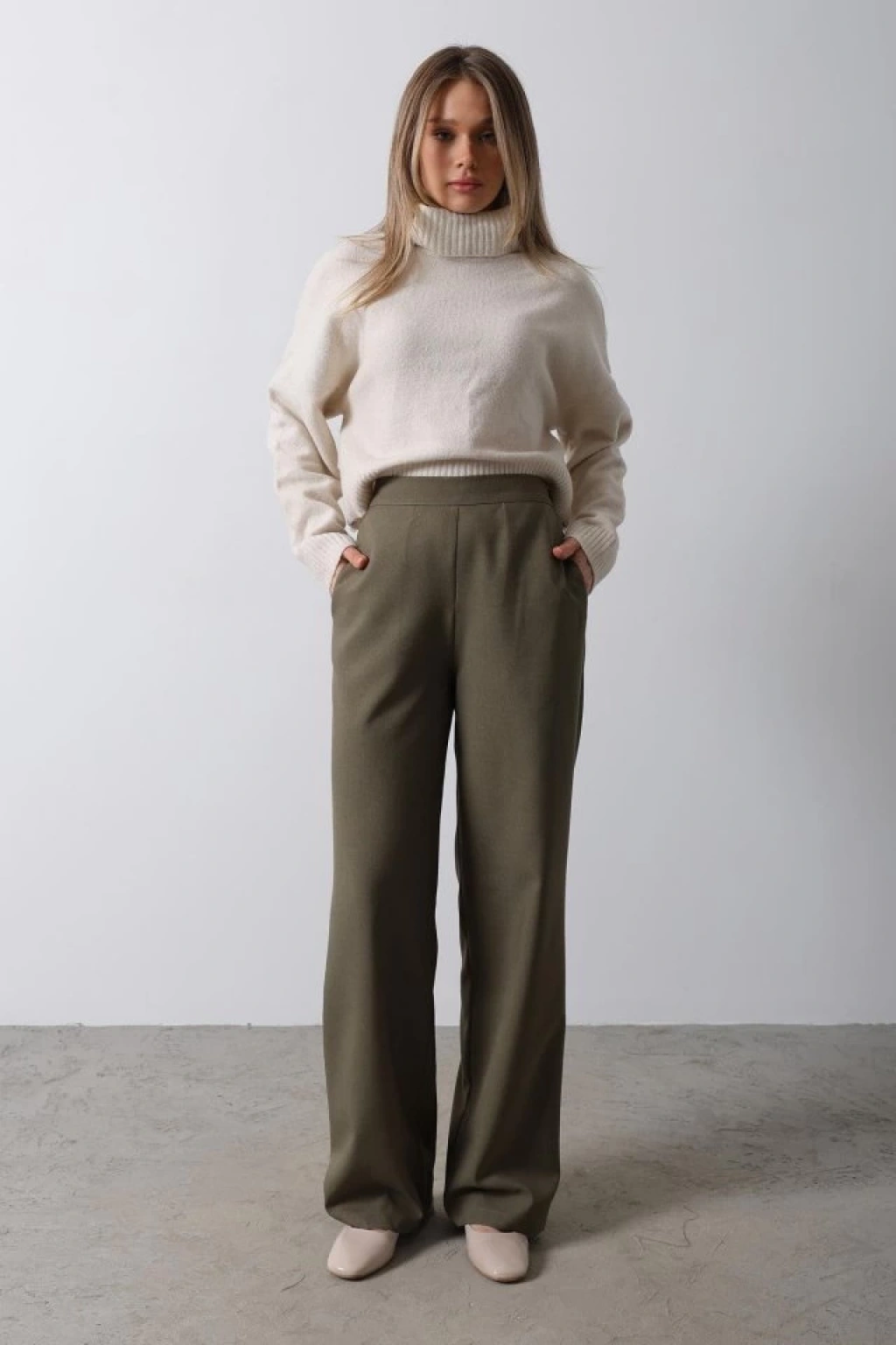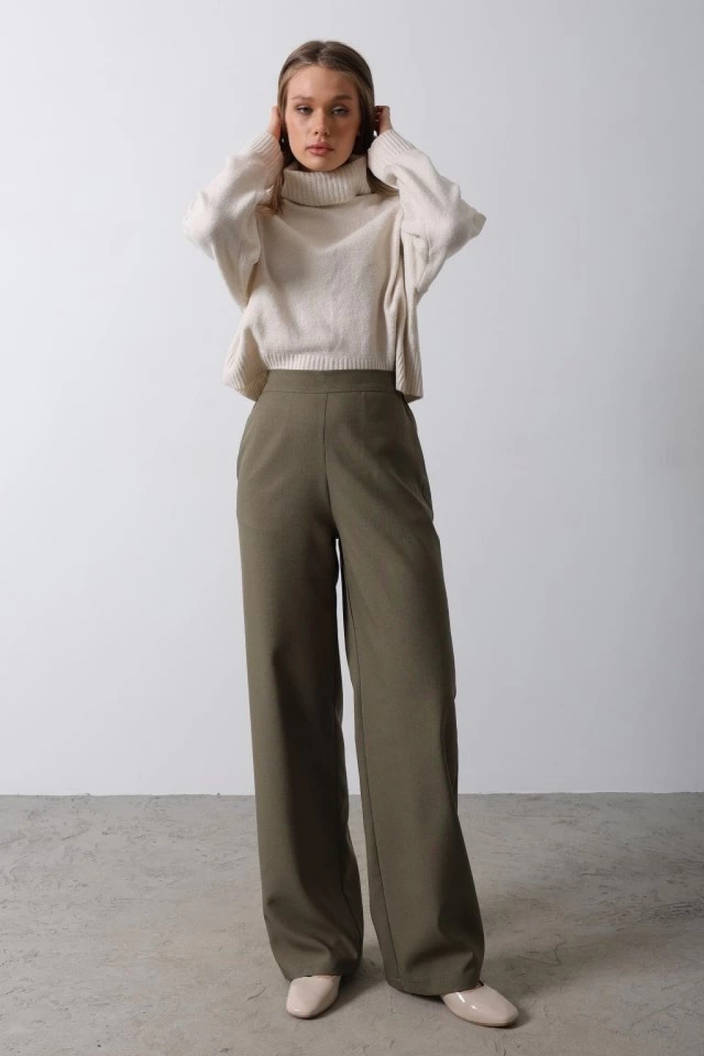 Beli Yarım Lastikli Palazzo Pantolon - Haki