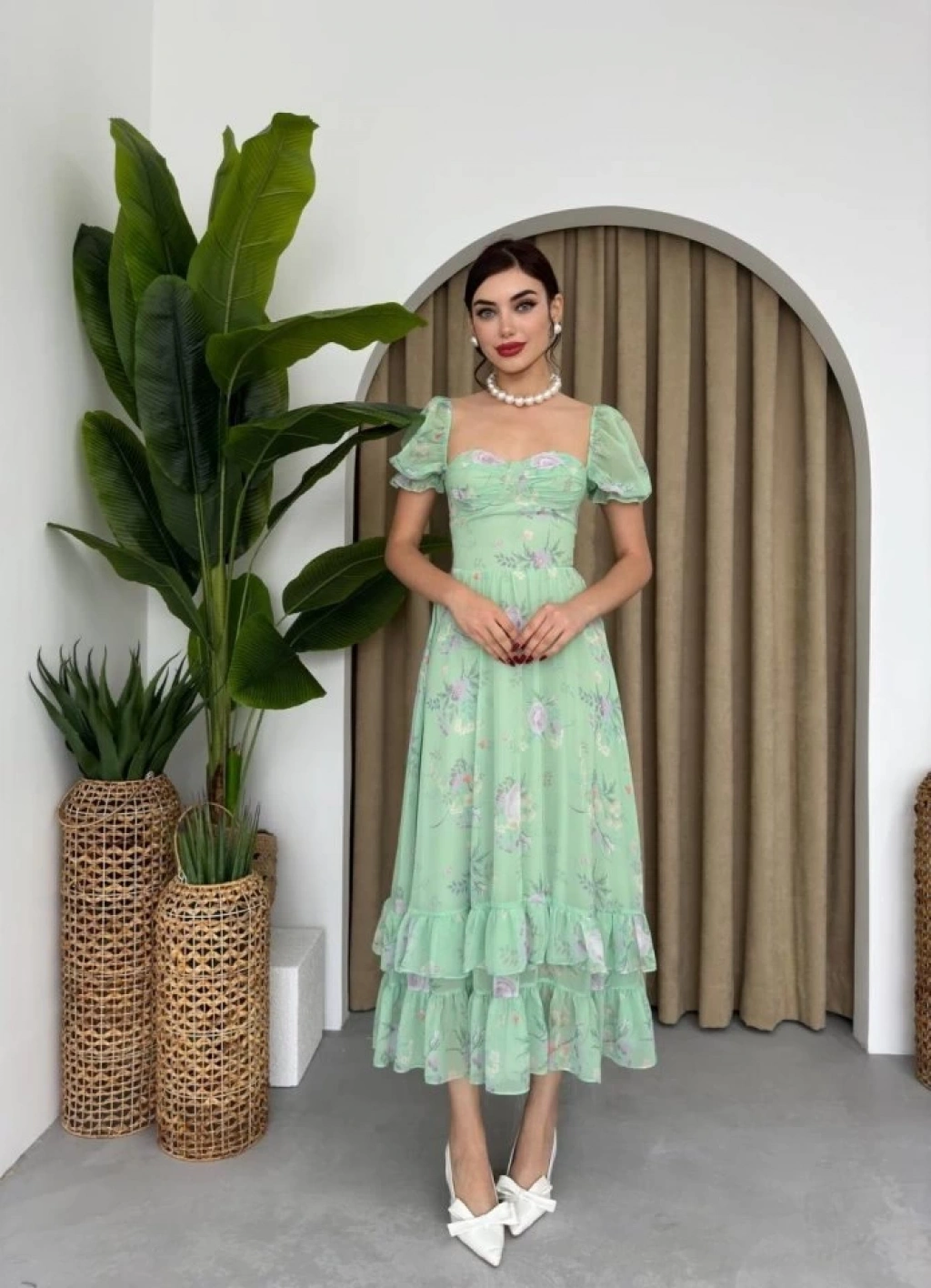 ŞİFON KUMAŞ DİJİTAL DESEN BASKILI ELBİSE