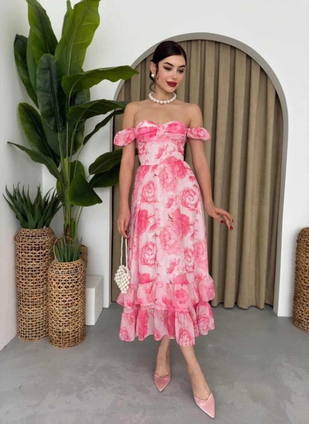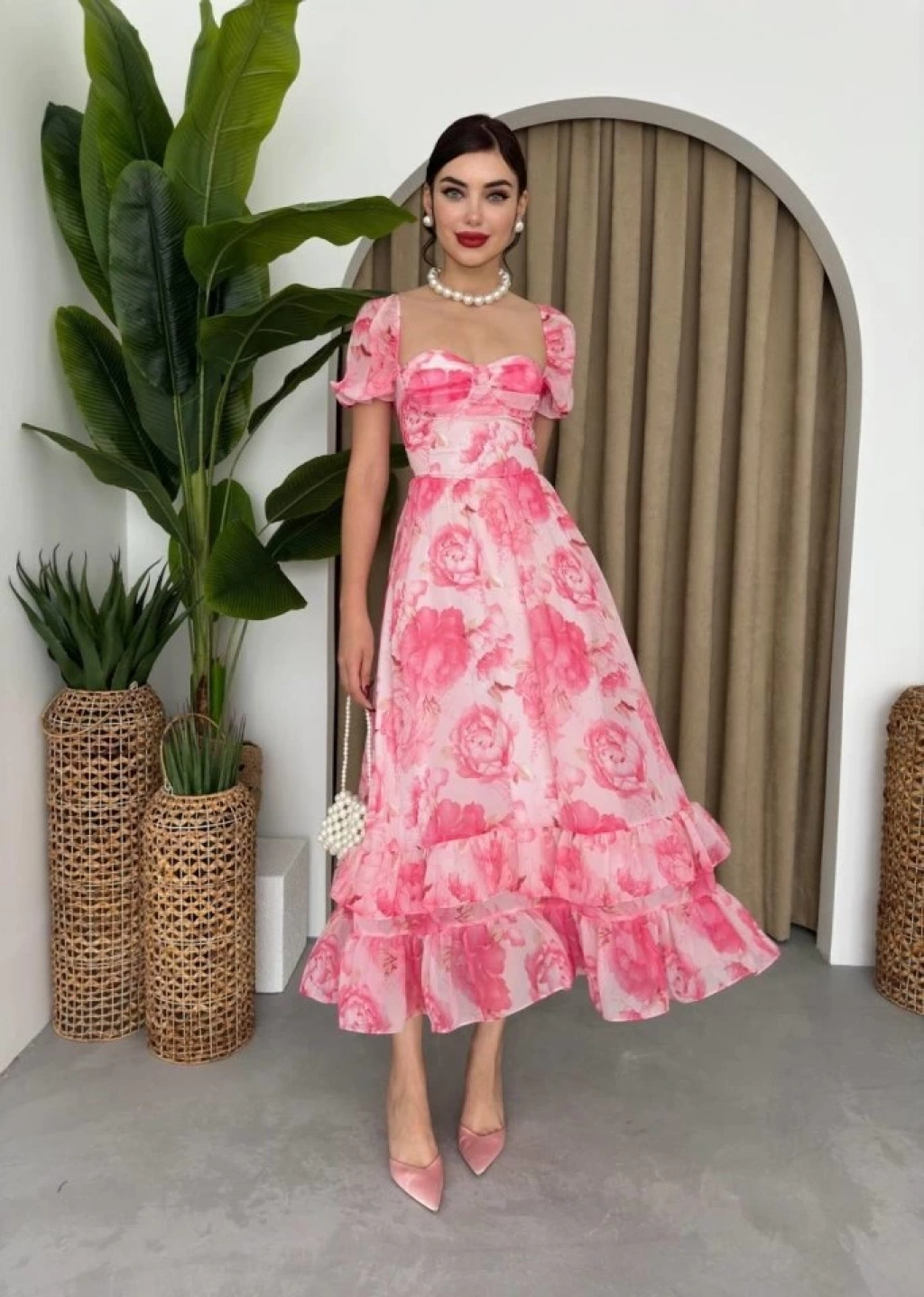 ŞİFON KUMAŞ DİJİTAL DESEN BASKILI ELBİSE