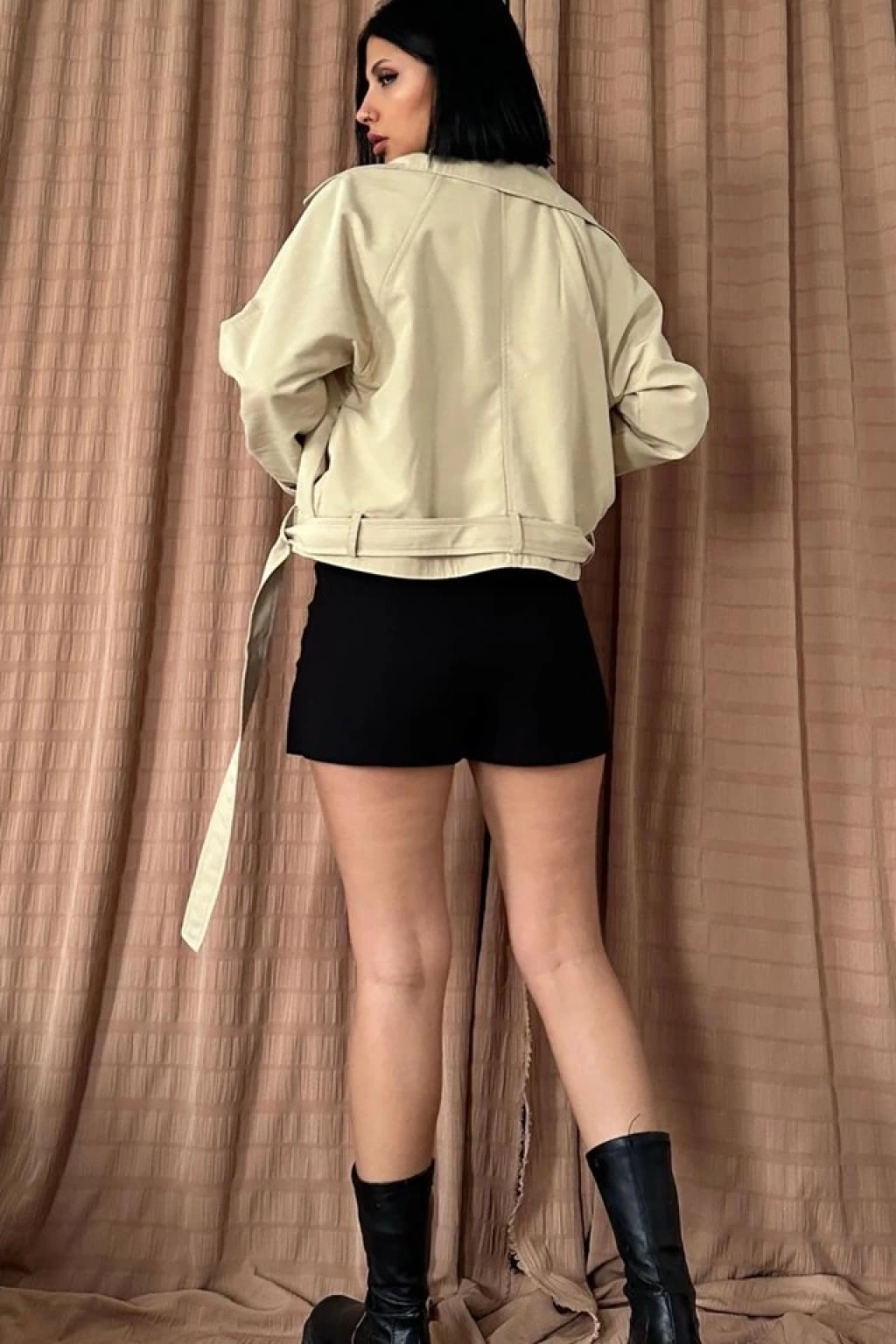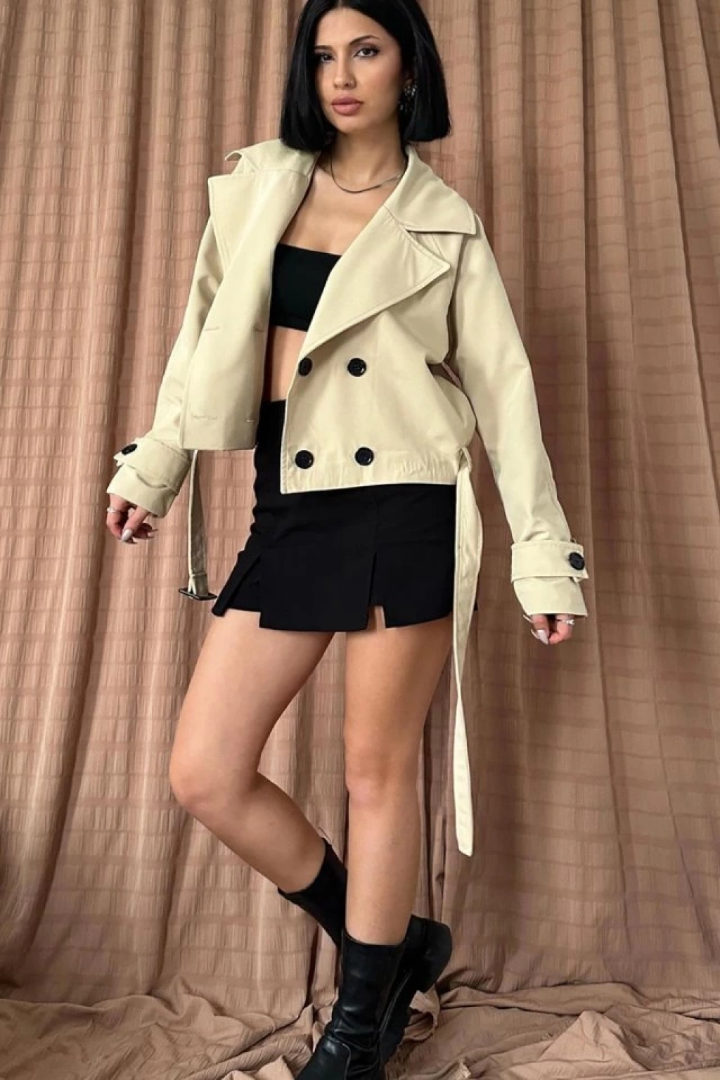 Vizon Kemerli Kısa Trech Ceket