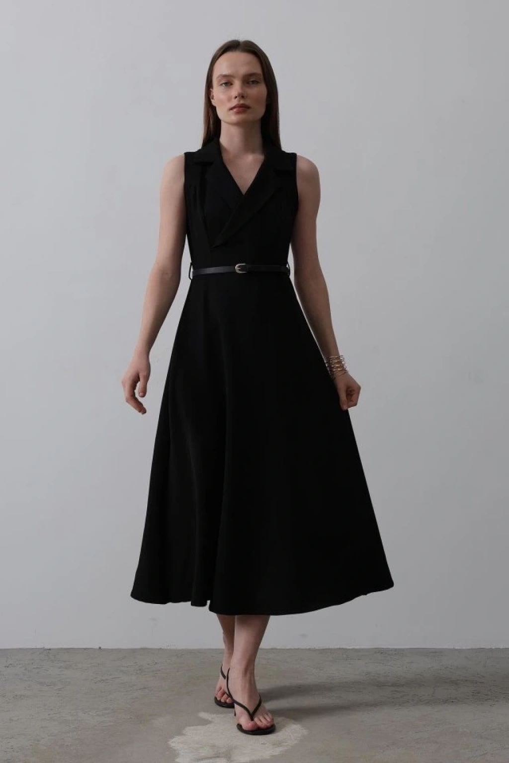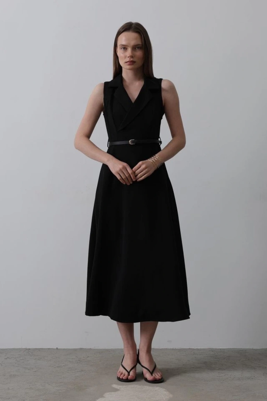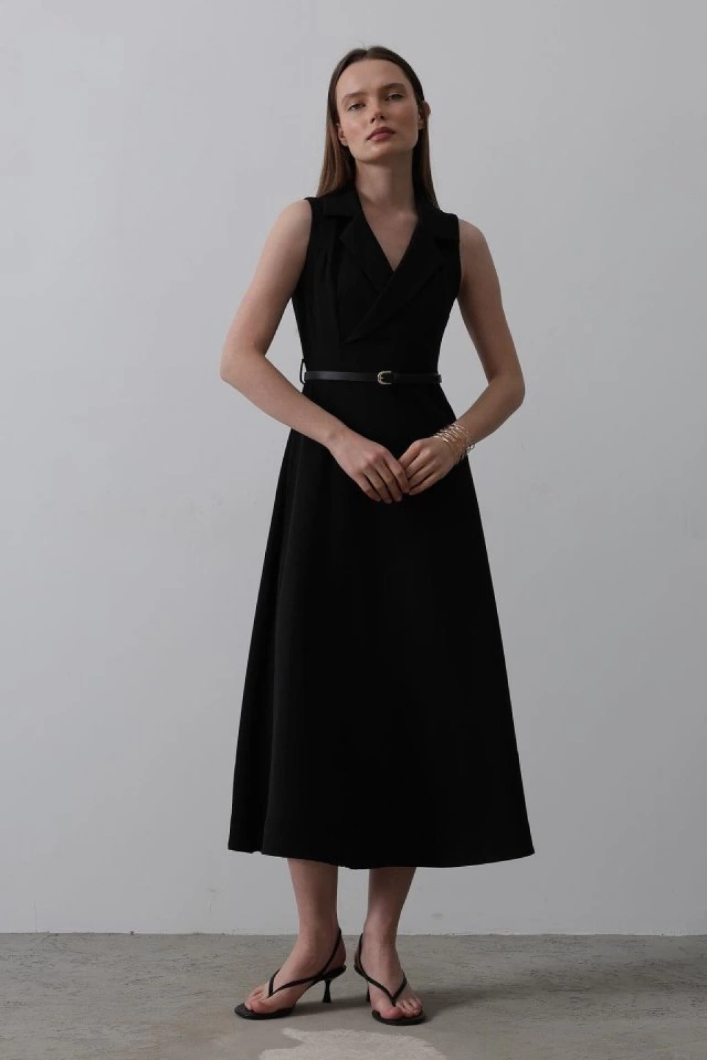 Sıfır Kollu Kemer Detaylı Elbise - Siyah