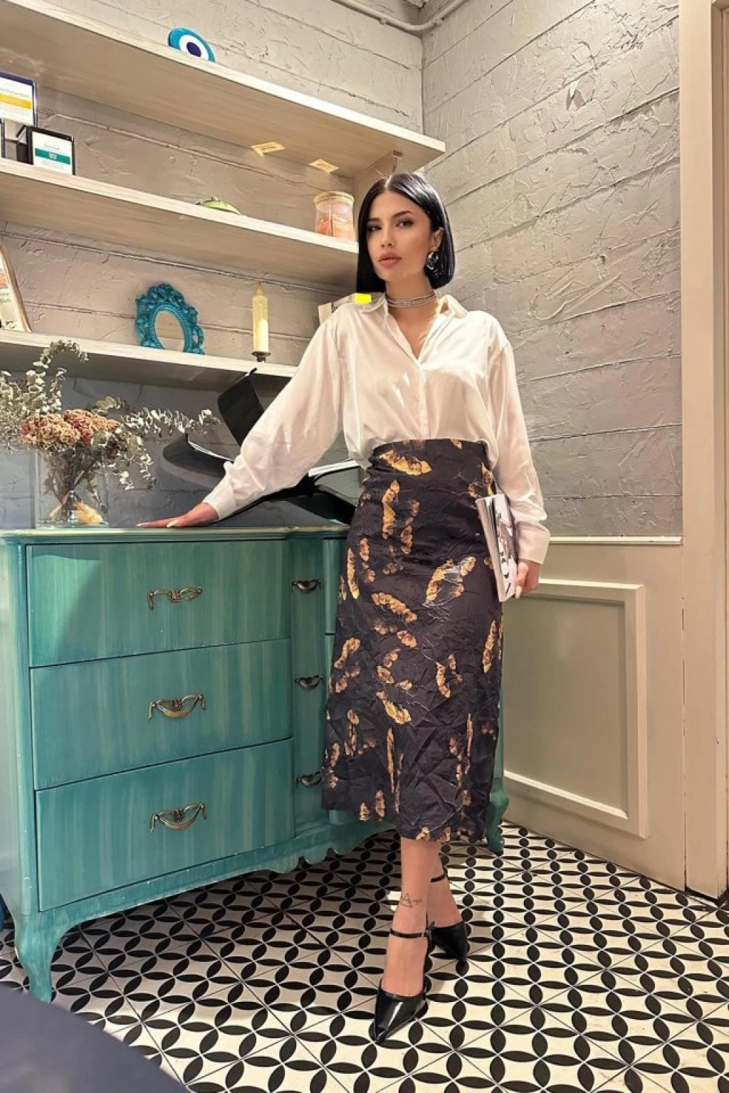 Modelin Ölçüleri: Boy:165, Kg:55, Göğüs:90, Bel:72, Kalça: 100