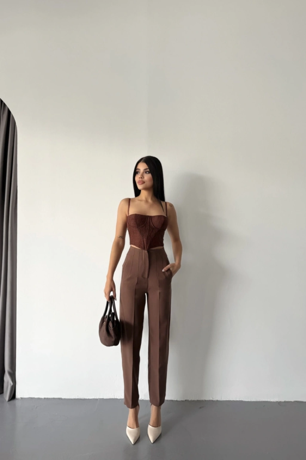 PANTOLON PENSLİ ATLAS KUMAŞ - Kahverengi