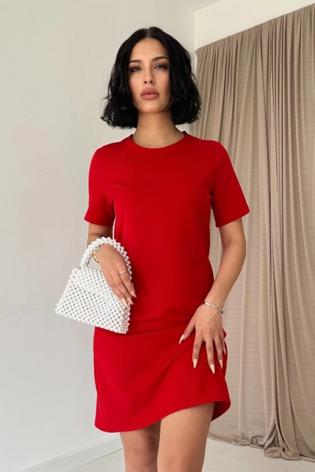 Kırmızı Kısa Kol Atlas Mini Elbise