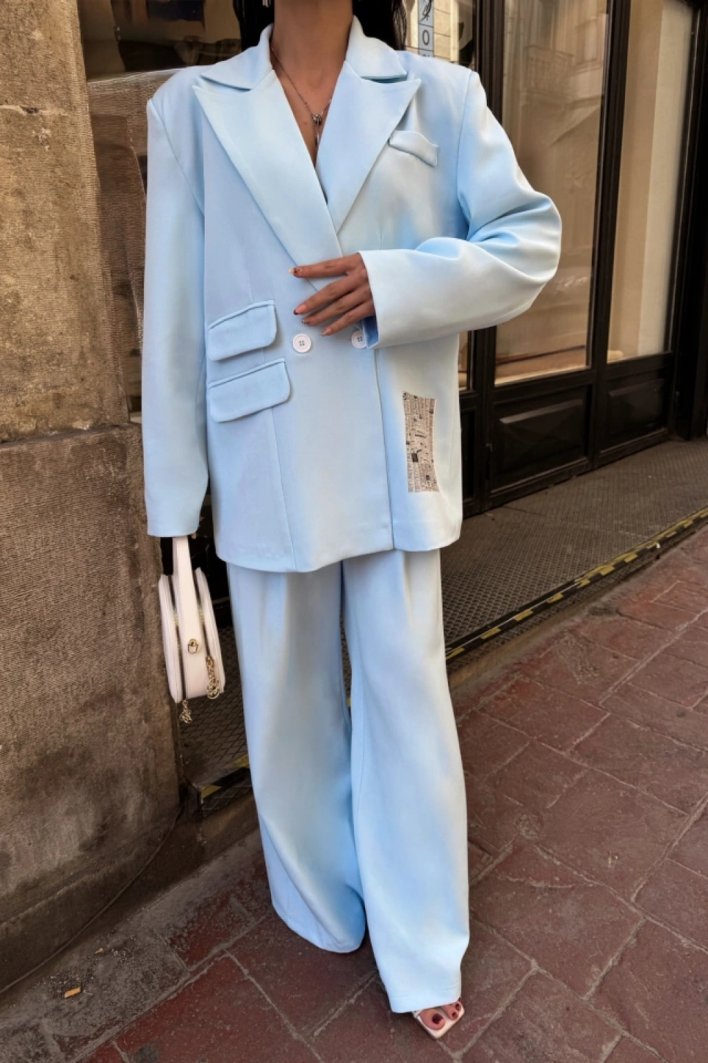 TASARIM ETİKET DETAYLI CEKET - PANTOLON TAKIM - Bebe Mavi