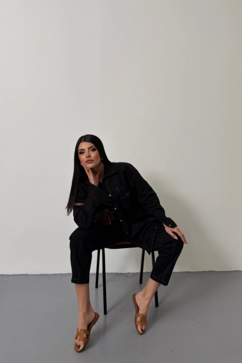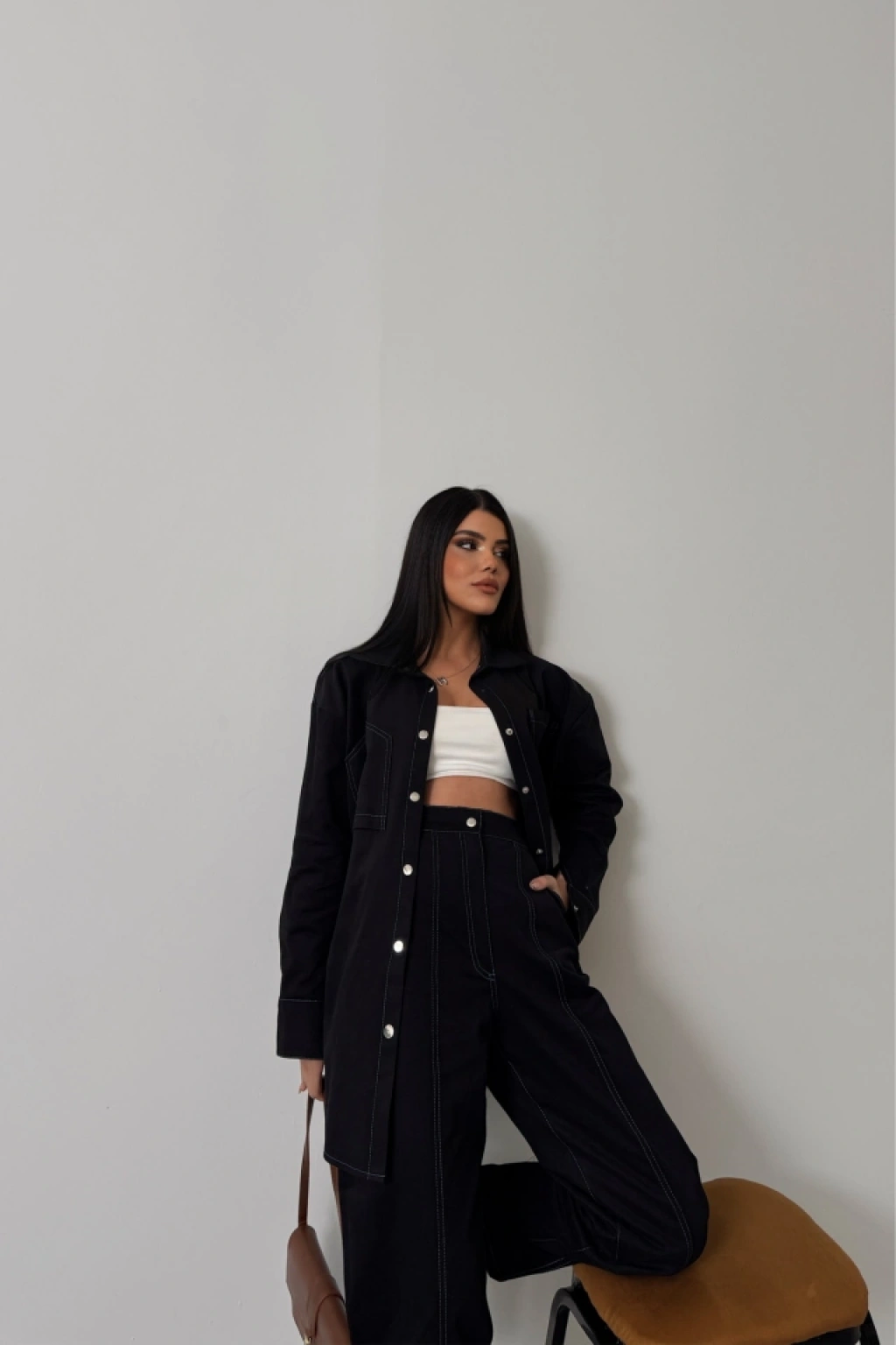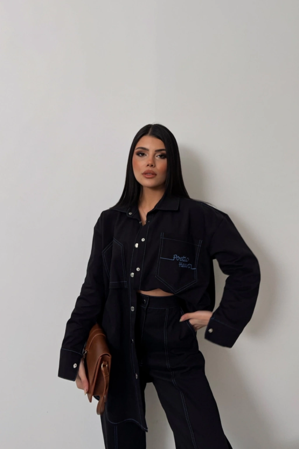 DENİM PUNTOLU GÖMLEK-PANTOLON TAKIM - Mavi