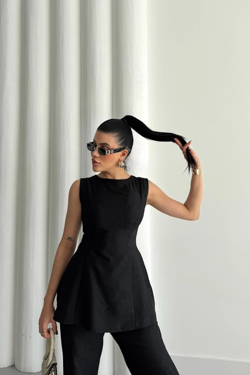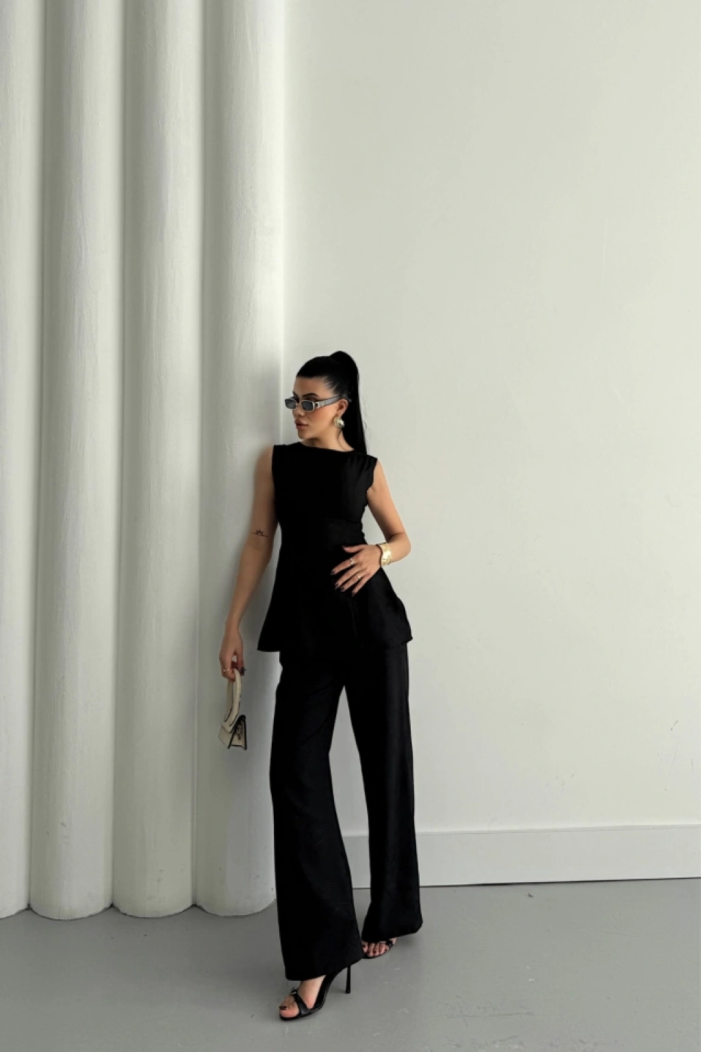JAKAR KETEN KOLSUZ BLUZ-PANTOLON TK - Siyah