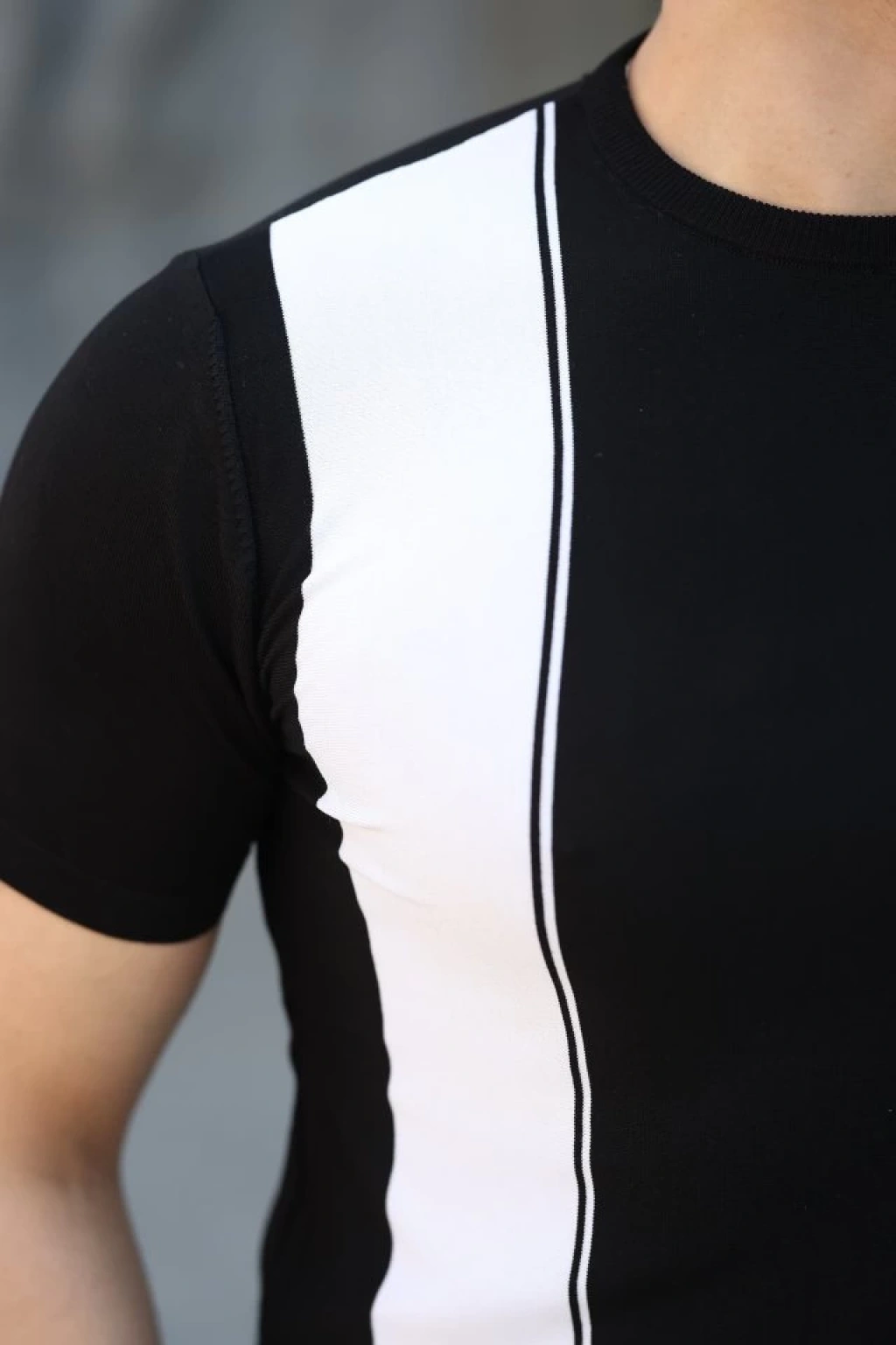 Erkek Viskon Kumaş Bisiklet Yaka çizgi Desenli Tişört