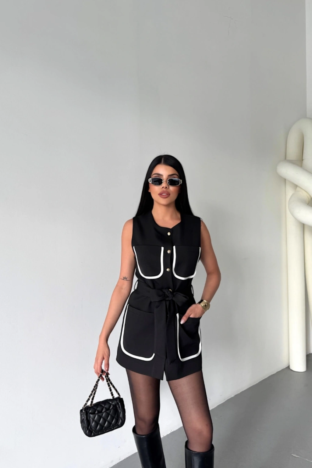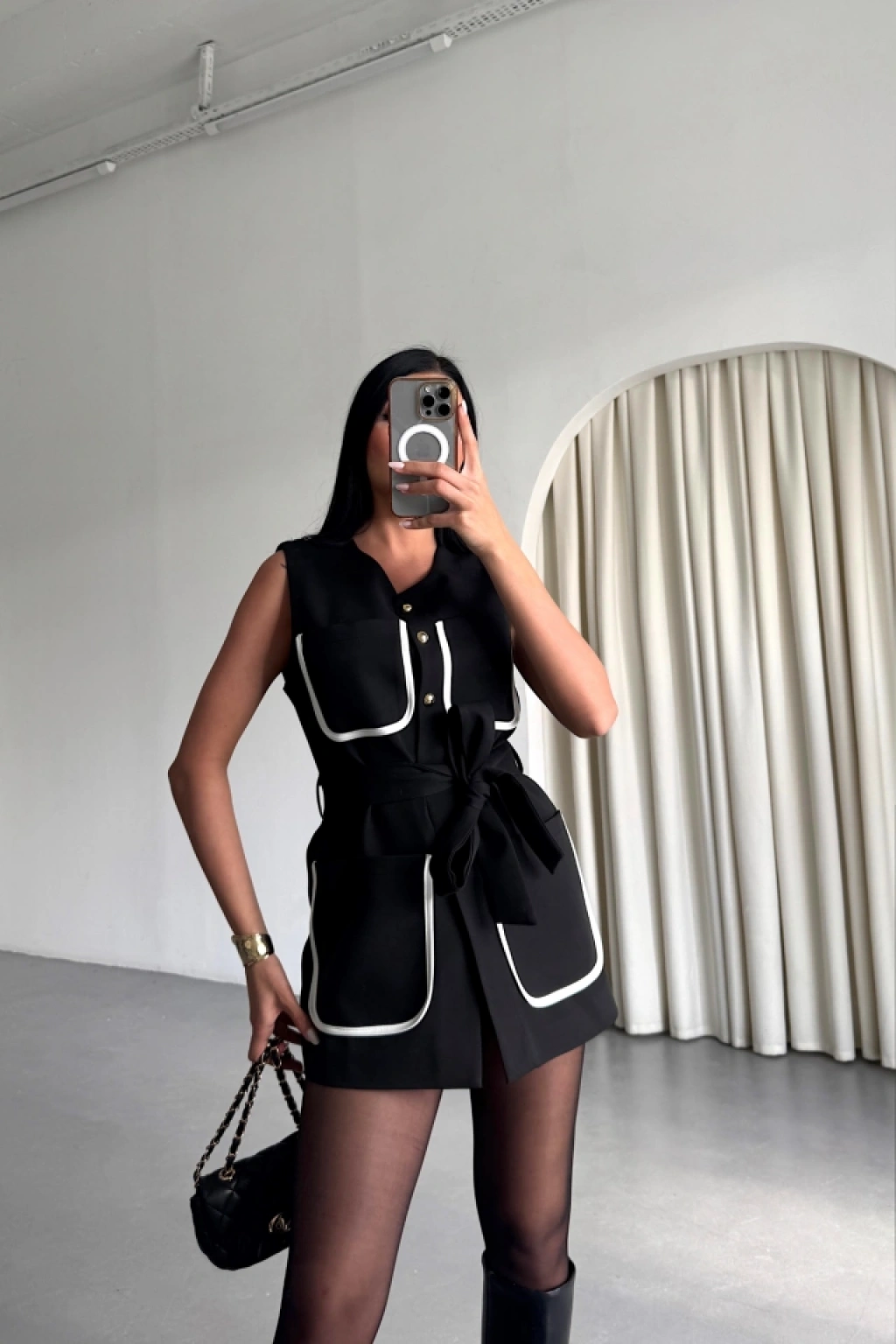 BÜYÜK CEP BİYE DETAYLIYELEK - Siyah