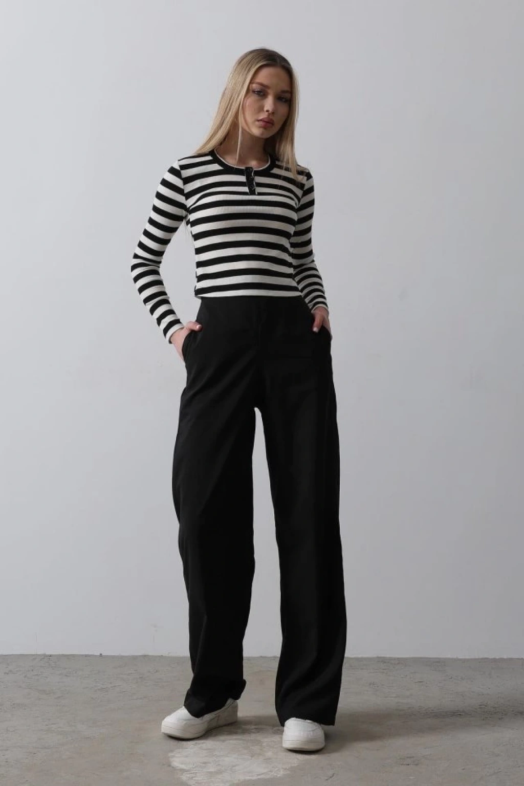Beli Yarım Lastikli Palazzo Pantolon - Siyah