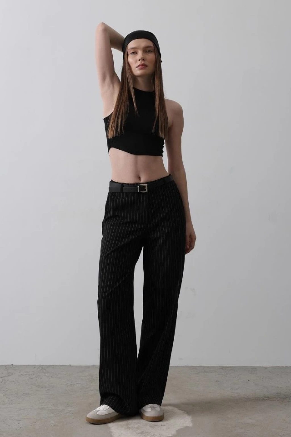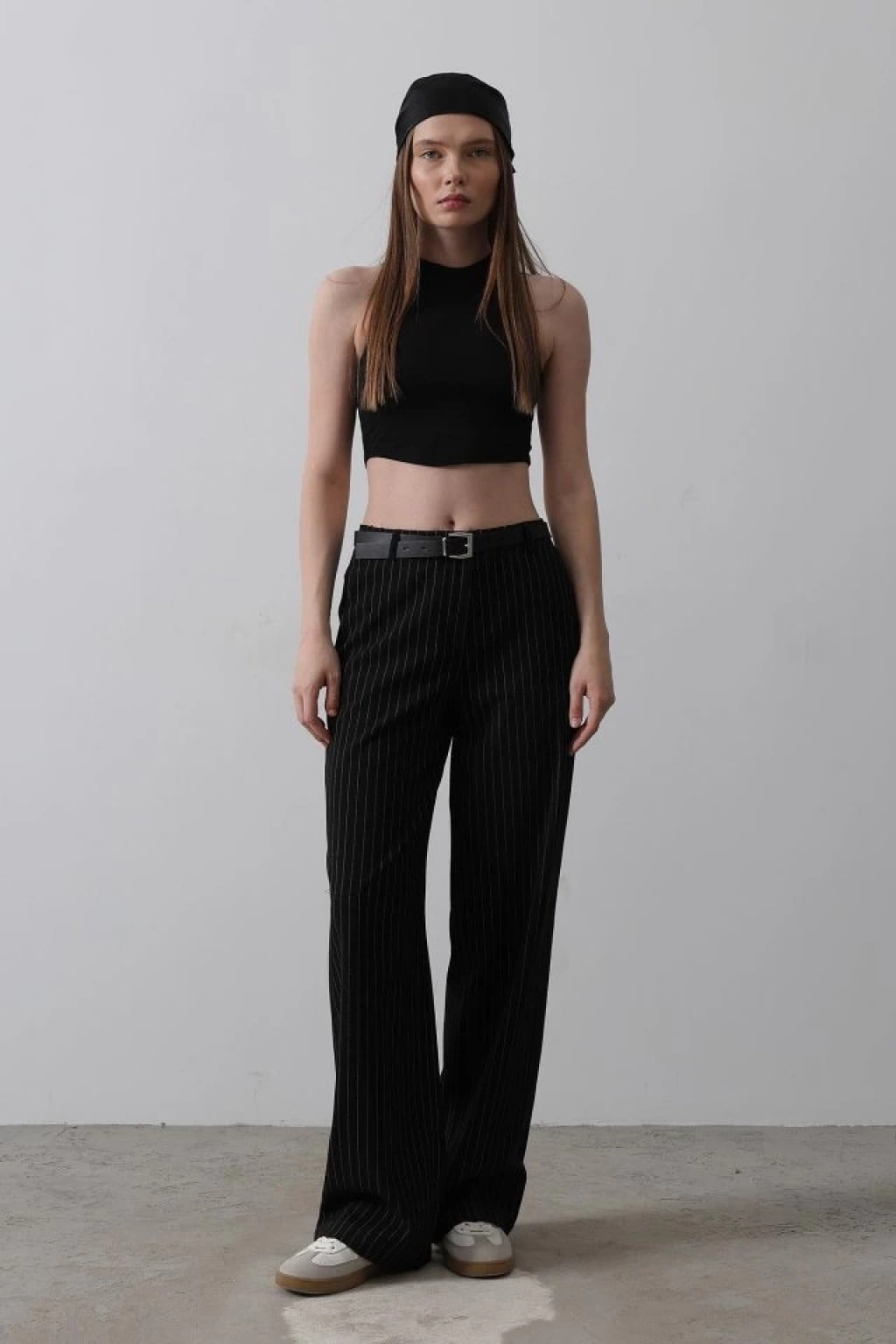 Kemerli Palazzo Pantolon - Siyah-Beyaz