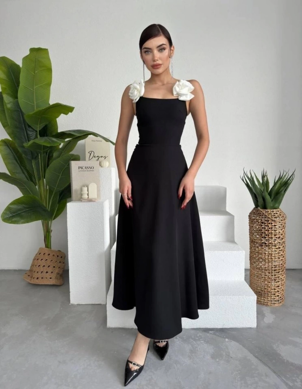 Matilda Gül İp Askılı Elbise