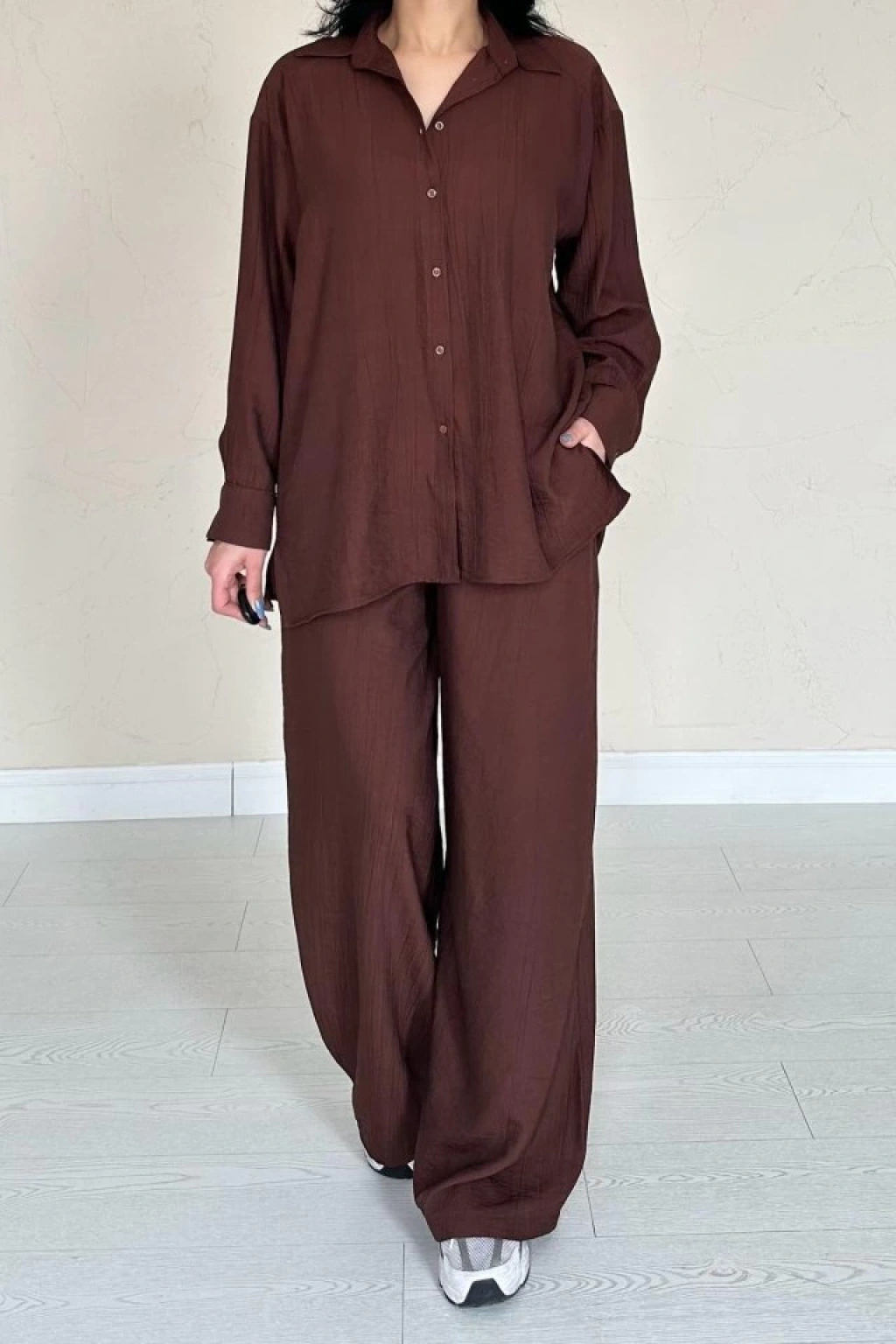 Kahverengi Alice Gömlek Ve Bol Kesim Pantolon Takım