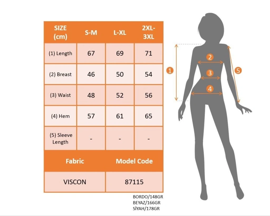 Modelin Ölçüleri: Boy:165, Kg:55, Göğüs:90, Bel:72, Kalça: 100