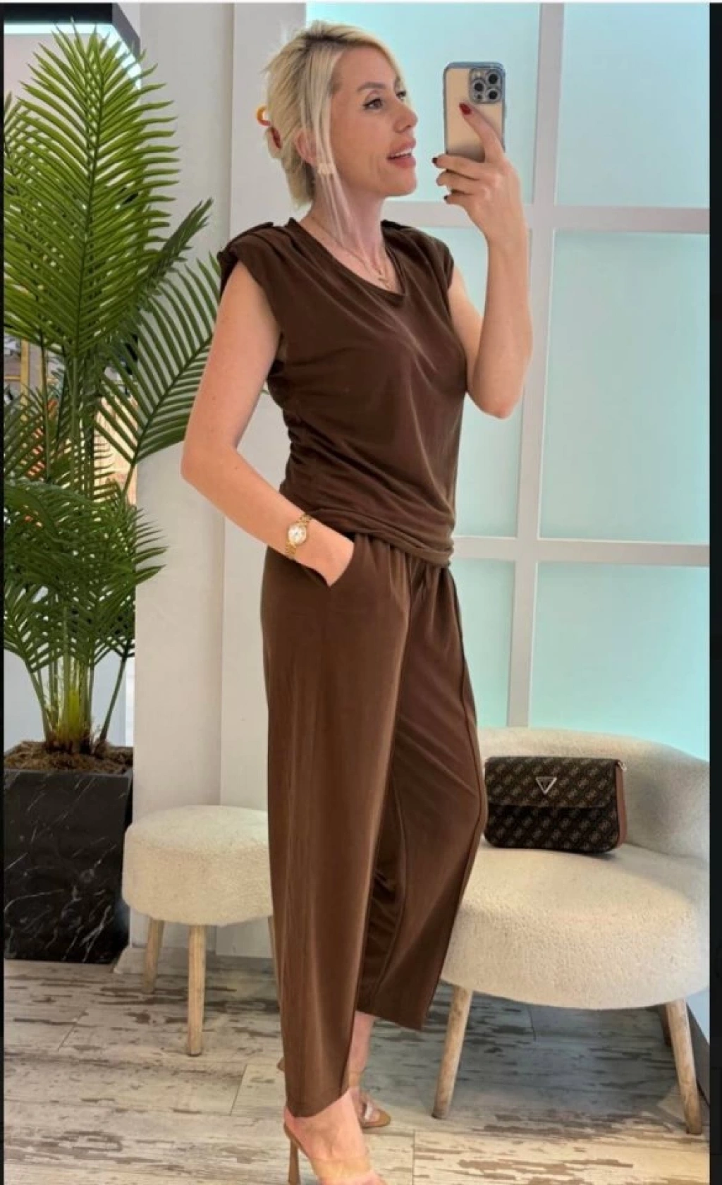 Kadın Vatkalı Düşük Kol Rahat Kesim İkili Takım